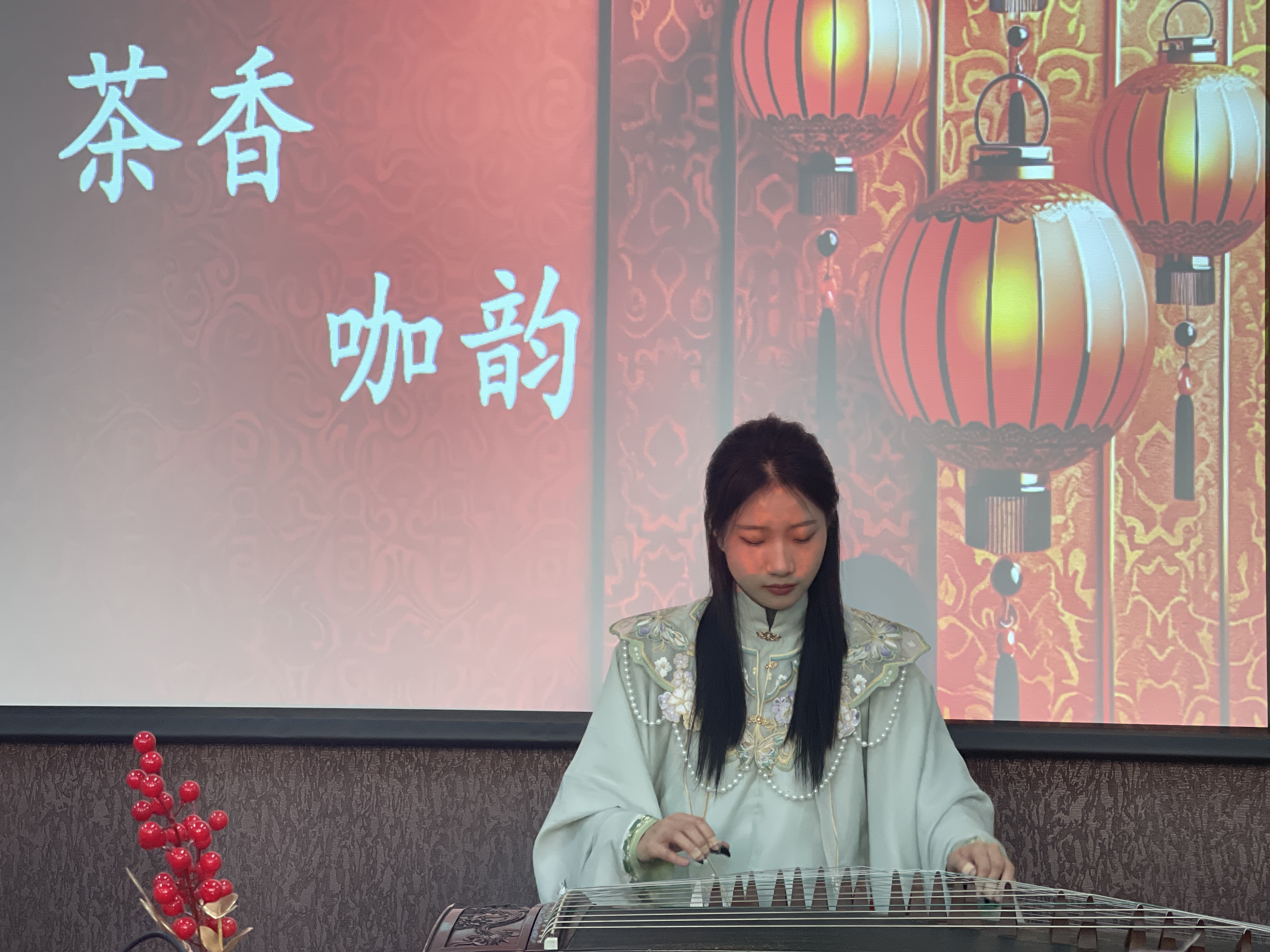 团拜会结合中国传统文化,分“茶香咖韵”“谜海迎春”“翰墨飘香”三个板块进行,设置了多元化、多元素的迎新春活动。活动现场热闹非凡,教师们品香茗、猜灯谜、写春联,散发着浓浓的年味儿。