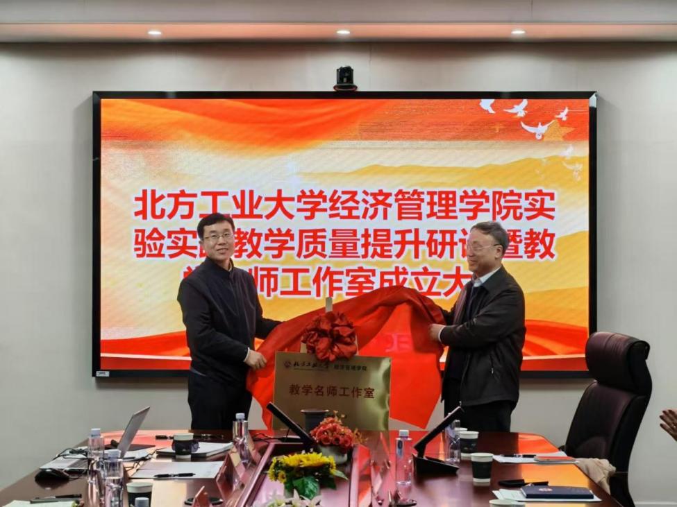 大会的第二个环节是pp电子官方网站教学名师工作室的成立仪式。经管学院党委书记谢朝阳和许光建教授共同为教学名师工作室揭牌。赵继新院长介绍了名师工作室成立的背景、主要工作内容及未来规划设想,并表达了希望通过工作室带动引领、助力全院教师教学水平提升的期望。