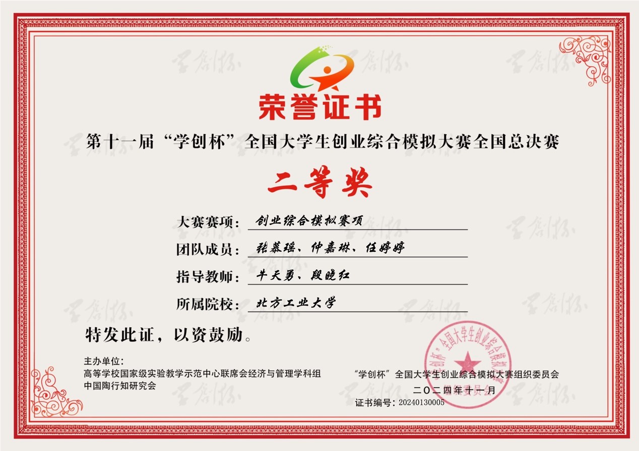 “学创杯”全国大学生创业综合模拟大赛由高等学校国家级实验教学示范中心联席会经济与管理学科组、中国陶行知研究会主办,杭州贝腾科技有限公司提供技术支持,为中国高等教育学会“全国普通高校大学生竞赛排行榜”A类赛事,至今已举办11届。本次大赛,全国参赛院校超过1500所,参赛团队超过12万支,参赛师生总数近50万人,比赛通过校赛、省赛、全国总决赛三级激烈竞争和严格选拔,最终我院学子在创业综合模拟赛项、数字营销模拟赛项和财务决策模拟赛项中均获得了全国二等奖的优异成绩。