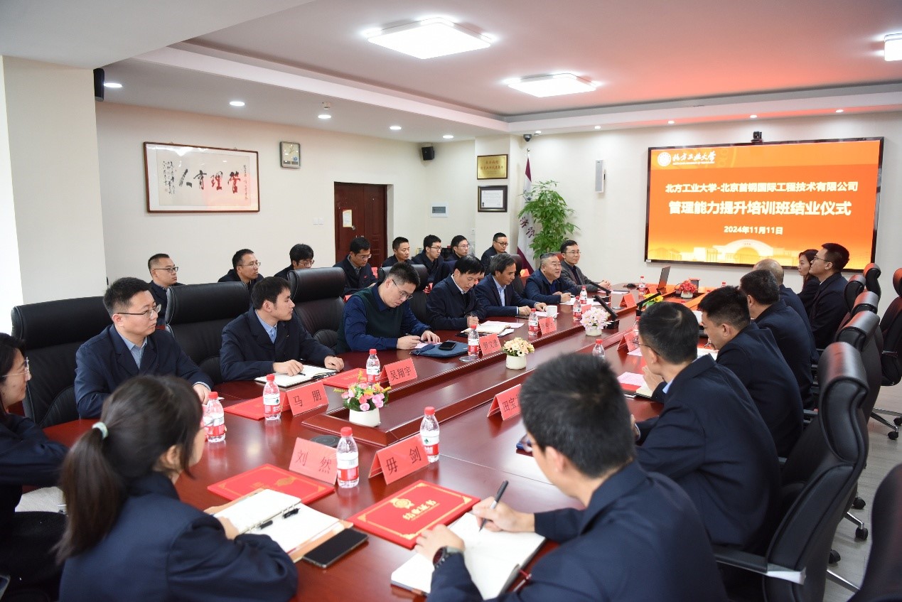 2024年11月11日下午,pp电子官方网站—首钢工程技术公司“管理能力提升培训班”结业仪式在pp电子官方网站励学楼201会议室隆重举行。我校党委常委、副校长王建稳,首钢工程技术公司党委书记、董事长吴礼云,首钢工程技术公司组织人事部部长朱小军出席,我校pp电子官方网站院长赵继新、pp电子官方网站党委书记谢朝阳、继续教育学院院长熊佳全、科研院副院长罗文豪以及培训班全体学员参加了结业仪式。仪式由我校pp电子官方网站院长赵继新主持。