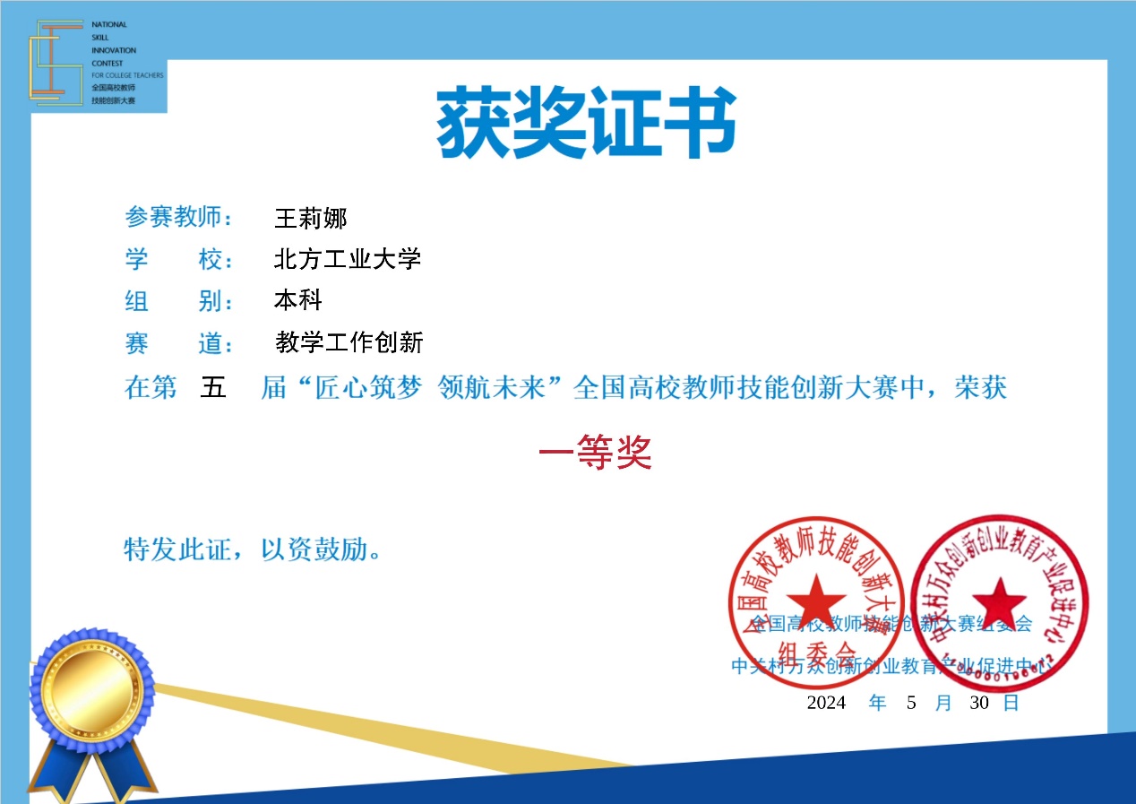近日,第五届“匠心筑梦 领航未来”全国高校教师技能创新大赛公布了比赛结果。我校经管学院教师王莉娜提交本科课程《证券投资学》,喜获教学工作创新赛道一等奖。