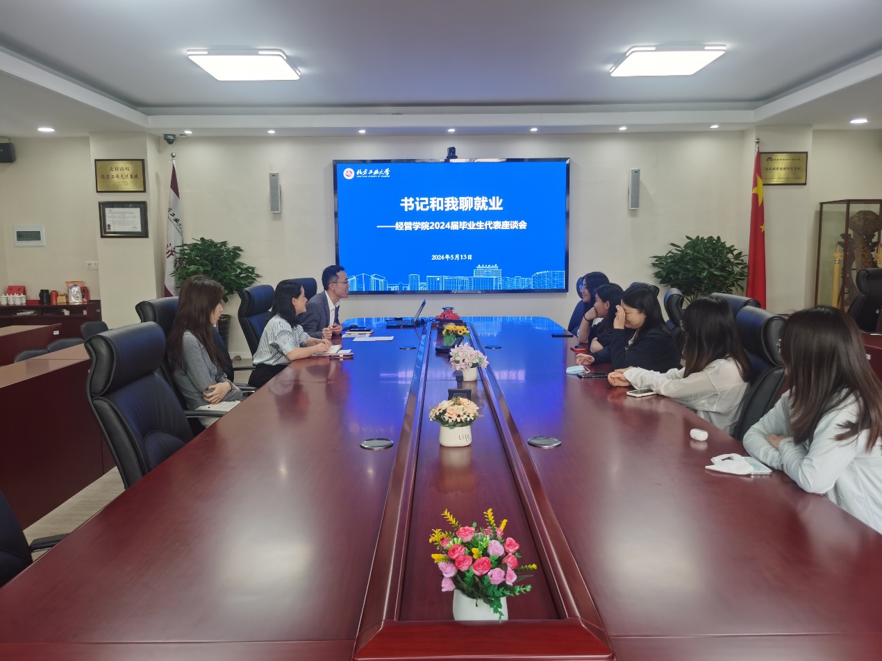 5月13日下午,pp电子官方网站在励学楼201会议室召开“书记和我聊就业”——毕业生代表就业座谈会。本次座谈会旨在帮助未就业国助毕业生更好地了解当前就业市场形势,同时结合实际,为同学们提供有针对性的就业指导。学院党委书记谢朝阳,党委副书记王帏,辅导员张泽圣以及部分毕业生参加活动。