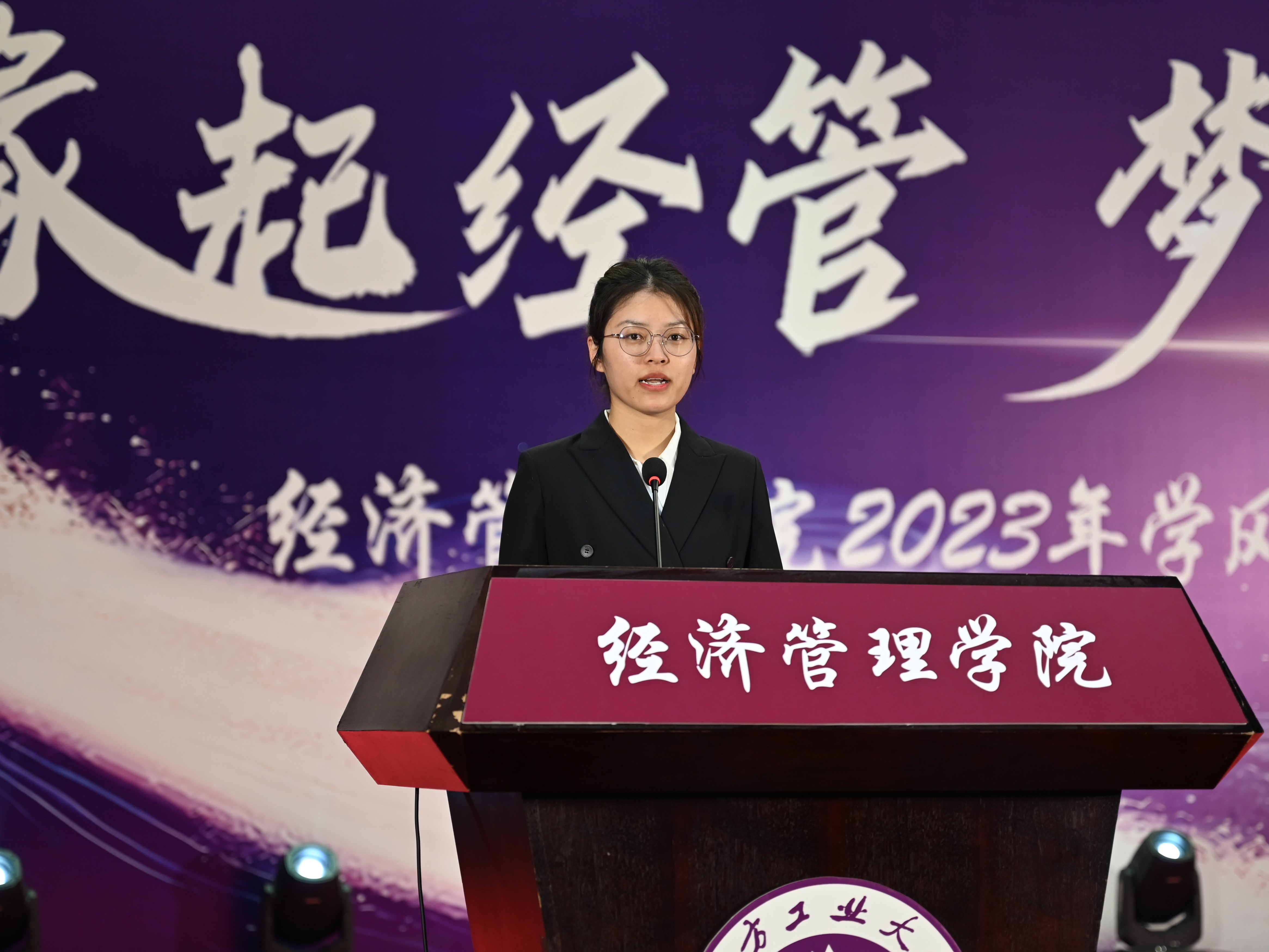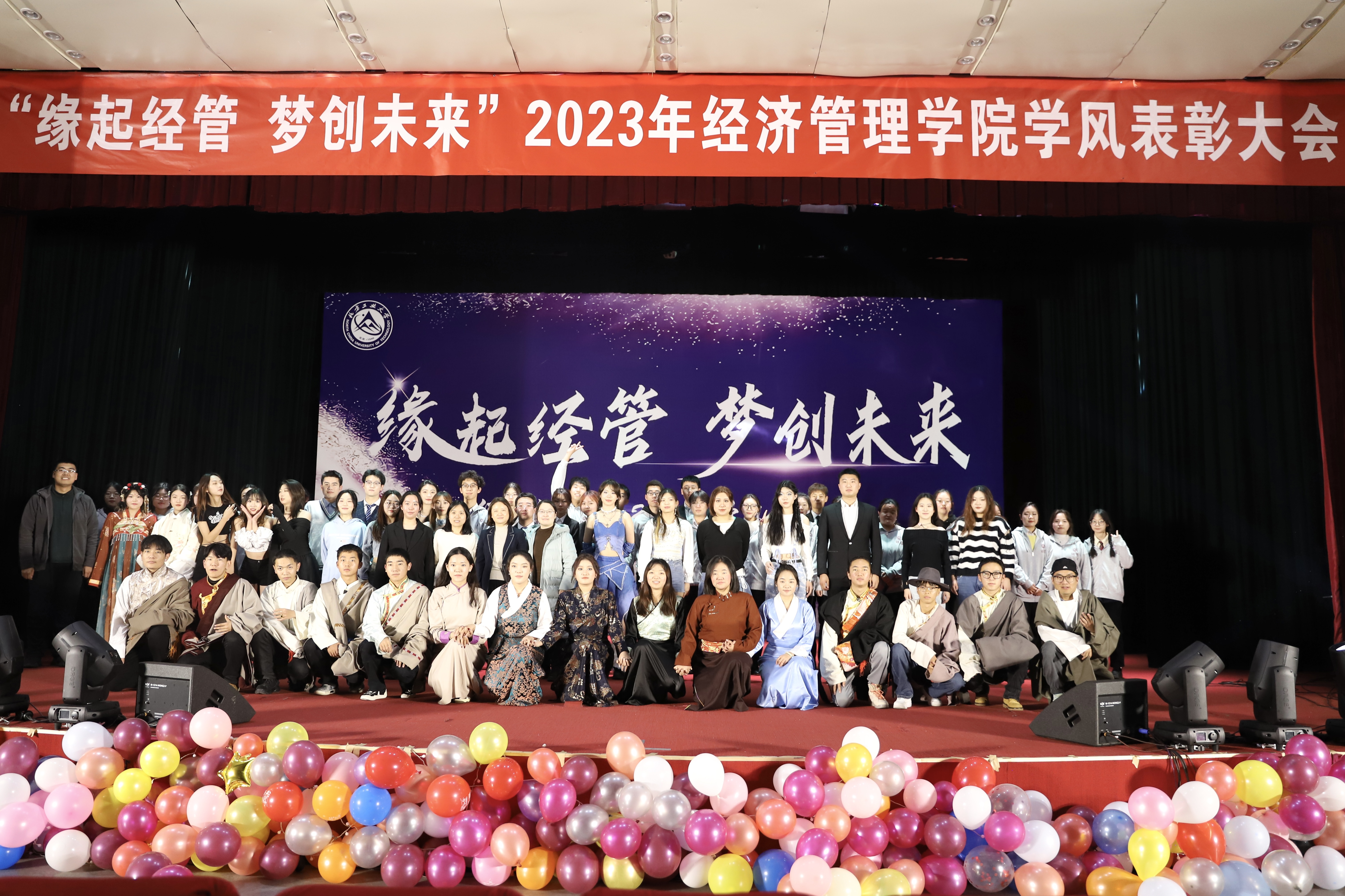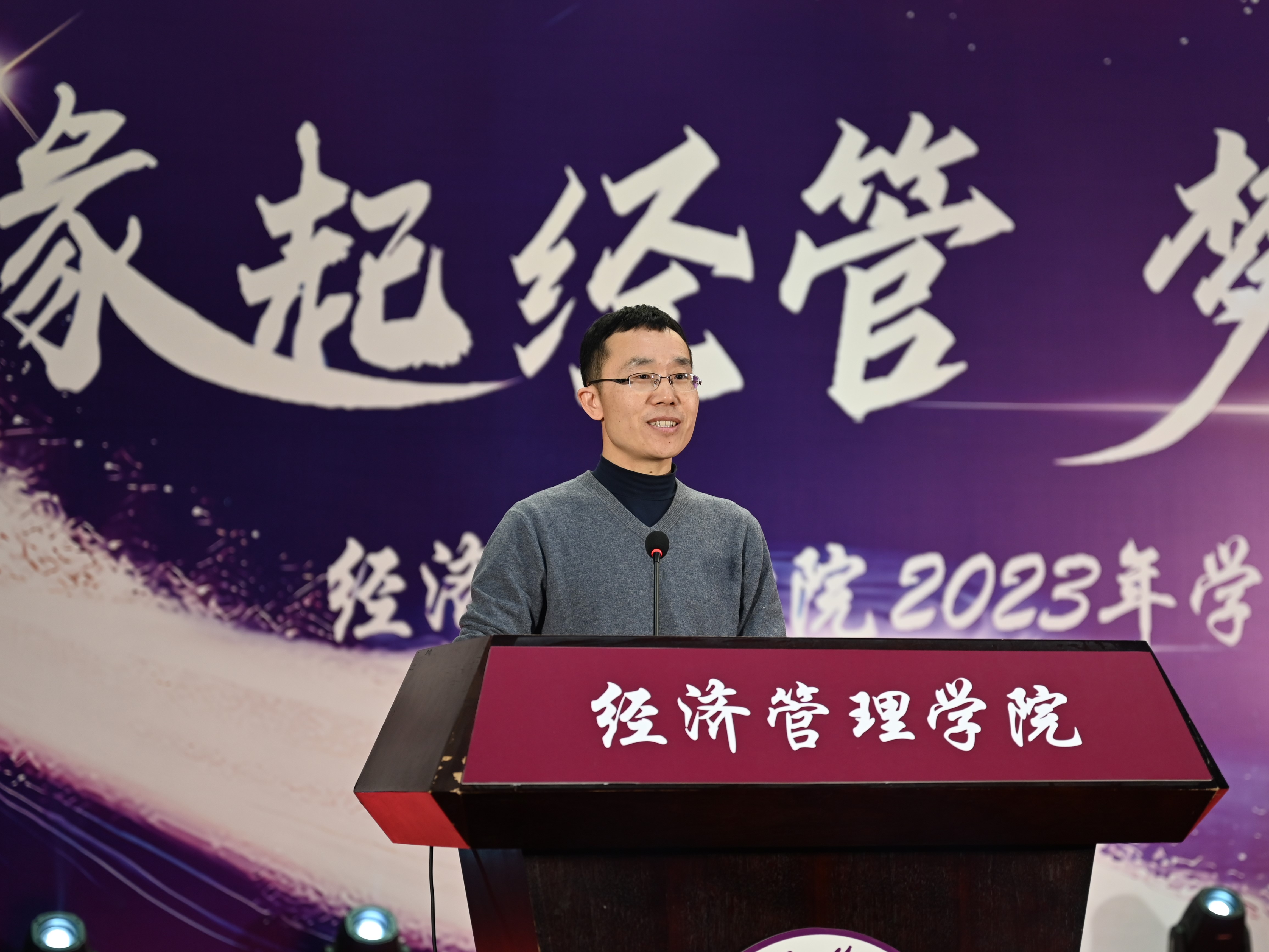 为加强学风建设,总结经验,展现学子风采,激励学院广大师生保持昂扬向上的奋斗姿态,12月14日晚,经管学院在图书信息楼报告厅举办“缘起经管 梦创未来”2023年学风表彰大会。校学生工作部部长孙宗瑞,学院领导班子全体成员,各系主任、班导师、辅导员,22级、23级全体学生参加了活动。