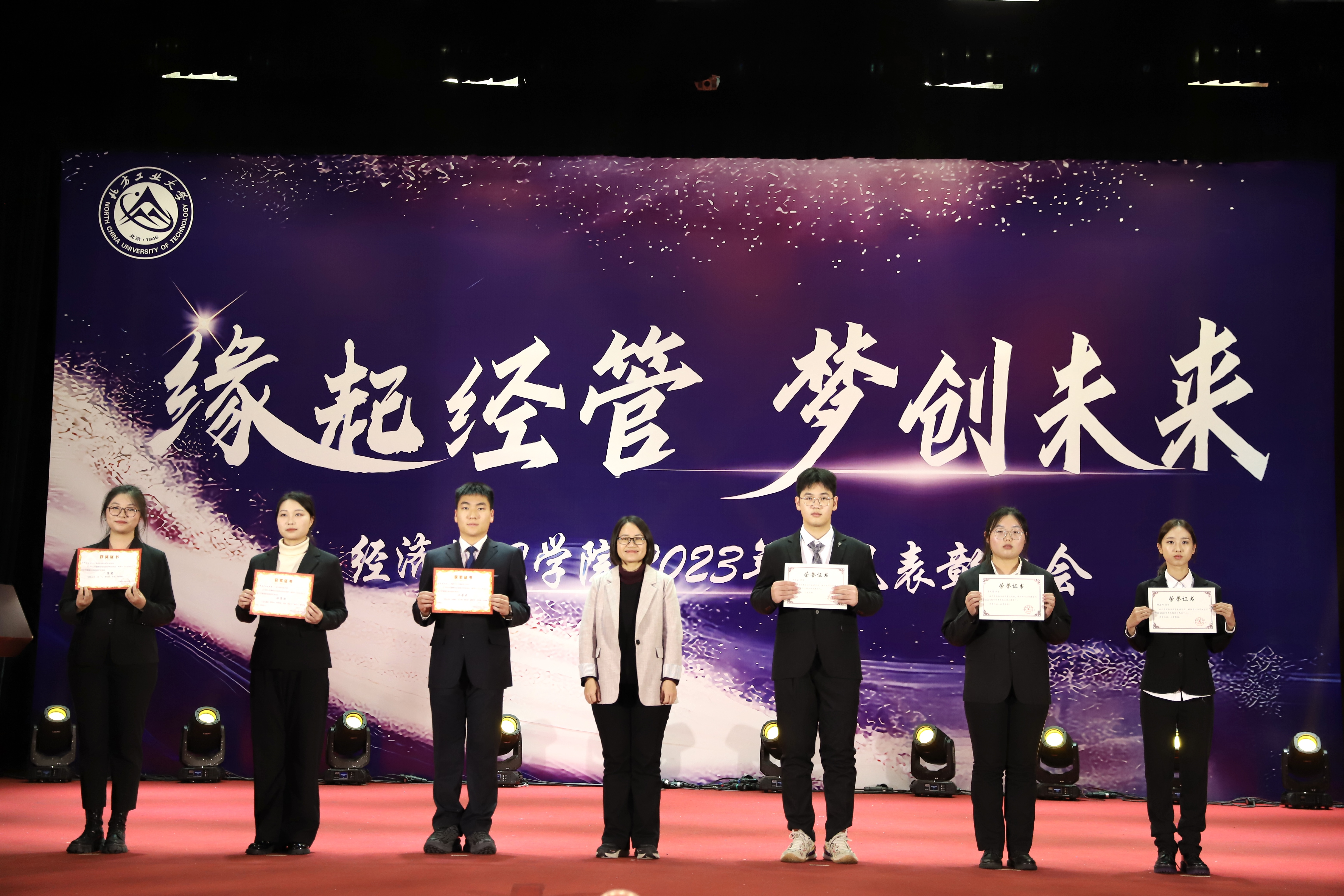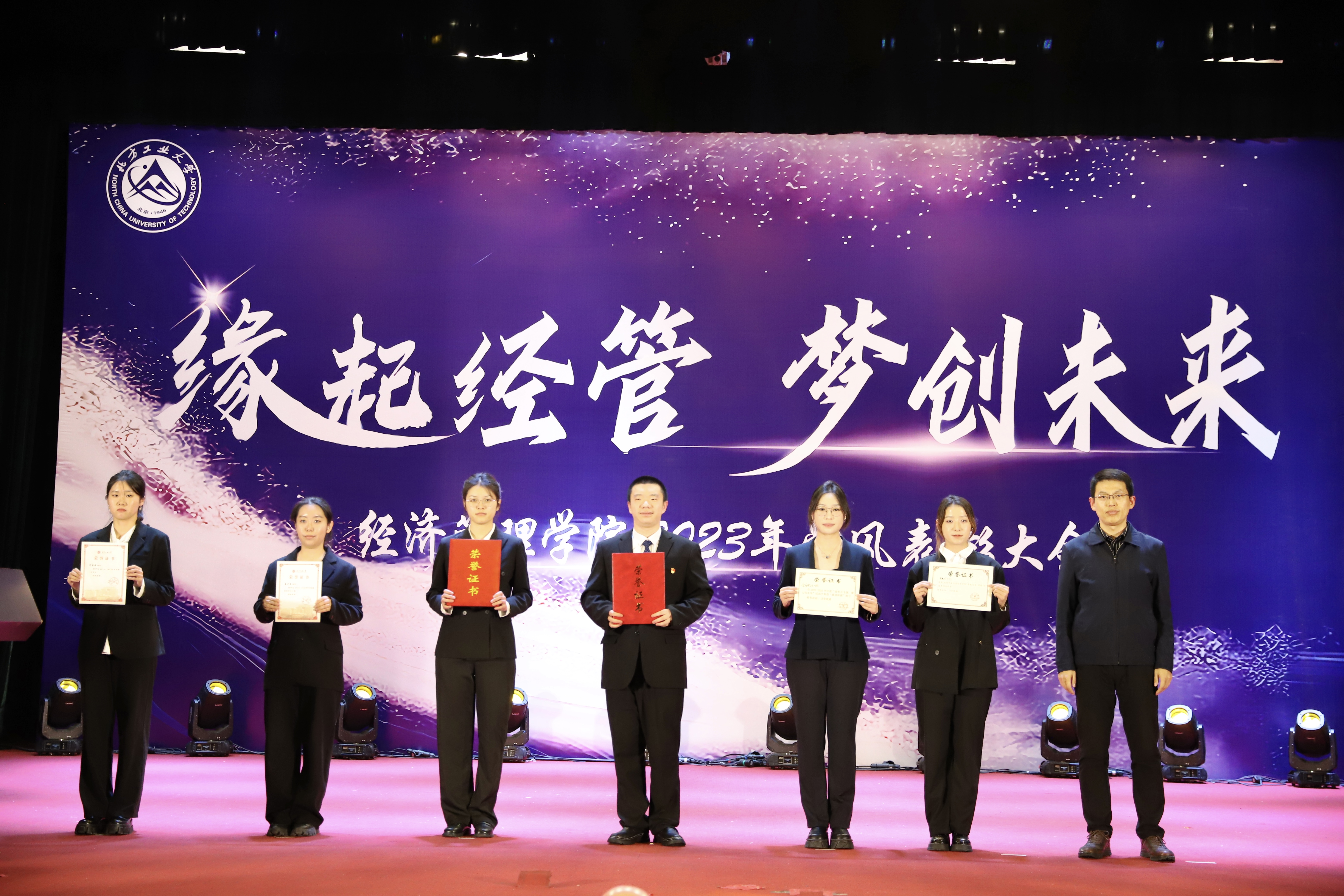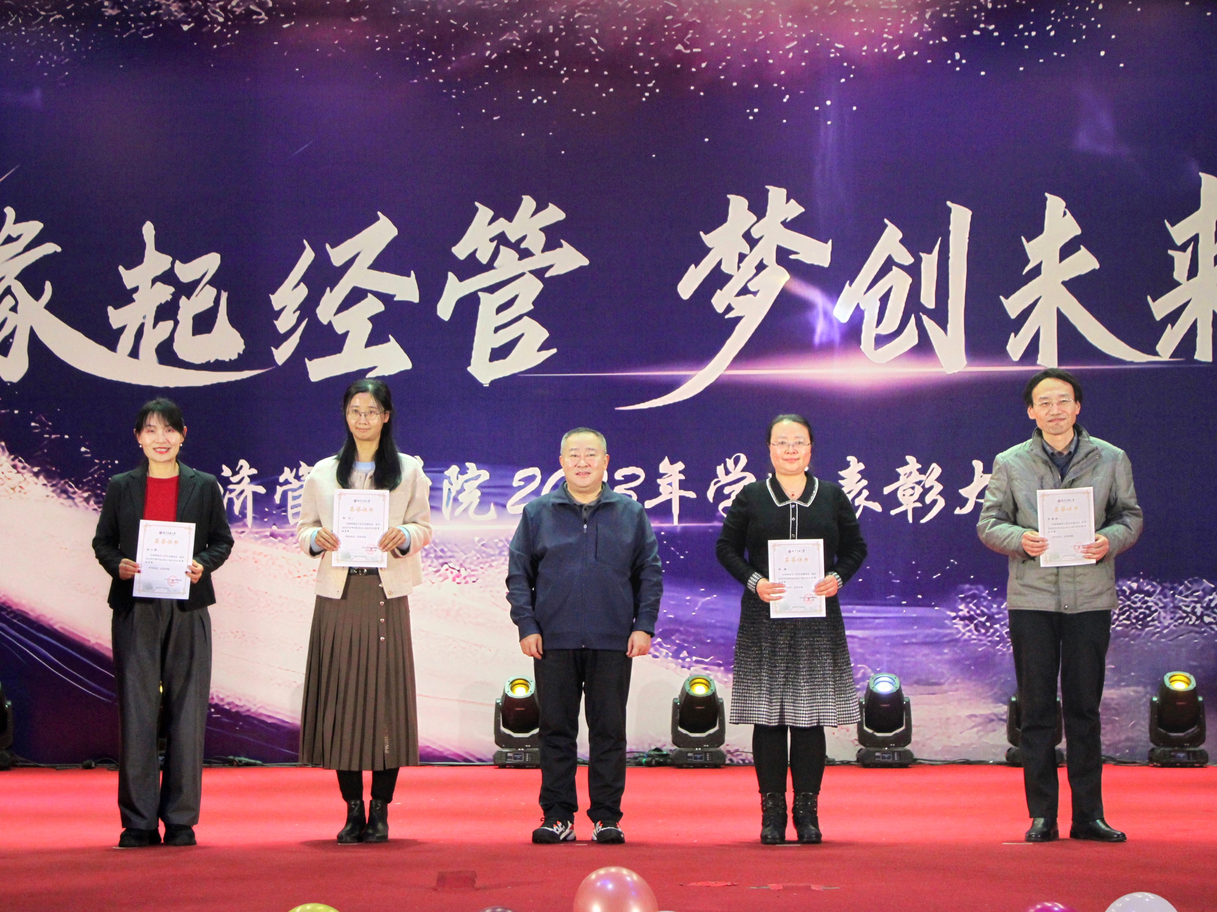 为加强学风建设,总结经验,展现学子风采,激励学院广大师生保持昂扬向上的奋斗姿态,12月14日晚,经管学院在图书信息楼报告厅举办“缘起经管 梦创未来”2023年学风表彰大会。校学生工作部部长孙宗瑞,学院领导班子全体成员,各系主任、班导师、辅导员,22级、23级全体学生参加了活动。