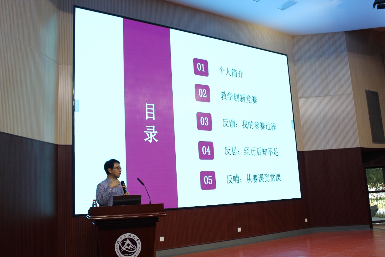 王若宾老师从教学创新大赛参赛后反馈、参赛过程反思及对教学工作的反哺三个角度,对教学创新大赛参赛经验与心得进行了系统分享,提出“用发现亮点的眼睛看学生”、“比赛只是经历,教学方为日常”等经典感悟。王莉娜老师首先重新呈现了参赛课堂演示,再从自己的参赛经历出发,将参赛准备、教学设计理念更新等方面进行了详细介绍,得出“多学习、多反思才能真正提高”的心得体会。