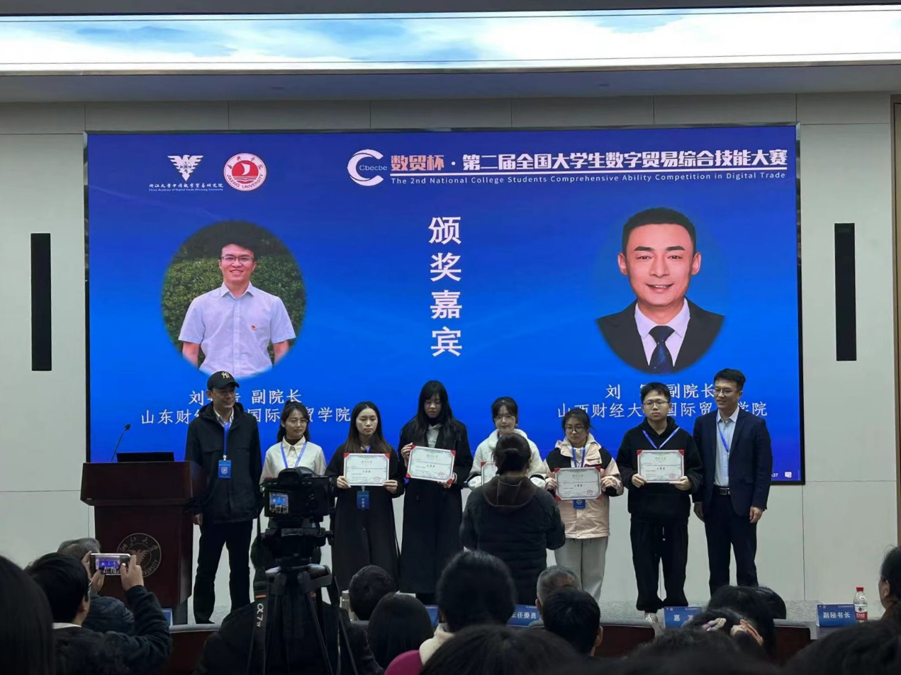 2023年11月26日,第二届全国大学生数字贸易综合技能大赛决赛在浙江大学圆满落幕,我校pp电子官方网站学生陈杰、张婧涵、荆思羽、谢茗雨组成的代表队在总决赛中获二等奖。