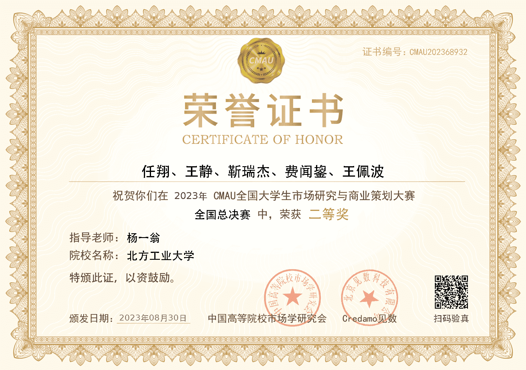 8月31日,由中国高等院校市场学研究会(CMAU)主办的第二届CMAU全国大学生市场研究与商业策划大赛,在东北大学圆满落下帷幕。我校pp电子官方网站杨一翁老师指导的,由工商管理系2022级研究生任翔、王静、靳瑞杰、费闻鋆和王佩波组建的参赛队荣获全国总决赛二等奖,杨一翁老师被评为优秀指导教师。