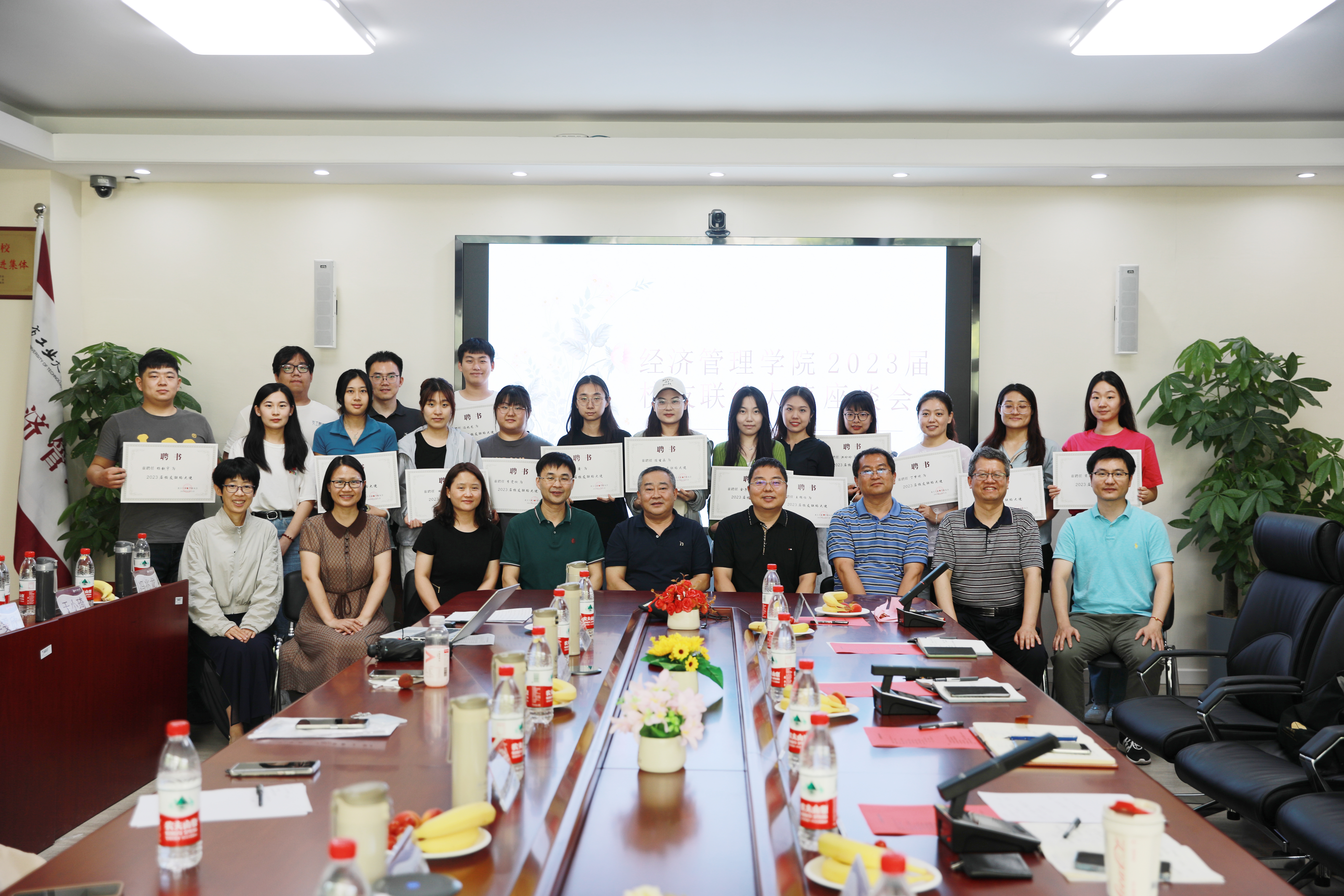 最后,陈勇钢、赵继新、王伟宾共同为学院2023届校园联络大使颁发聘书,并合影留念。