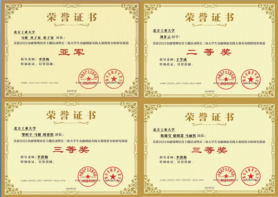 在2023年4月份刚结束的答辩环节中,我校由马健、陈子豪、黄子豪组成的金融秃鹰代表队,在经济系李洪梅、王学成、张蜀林、王莉娜四位老师指导下,不畏强敌,奋勇拼搏,最后获得了全国亚军,并获取大赛奖金1.2万元人民币,学生充分展现了出色的专业素养和专业技能,以及较强的金融创新实践能力。