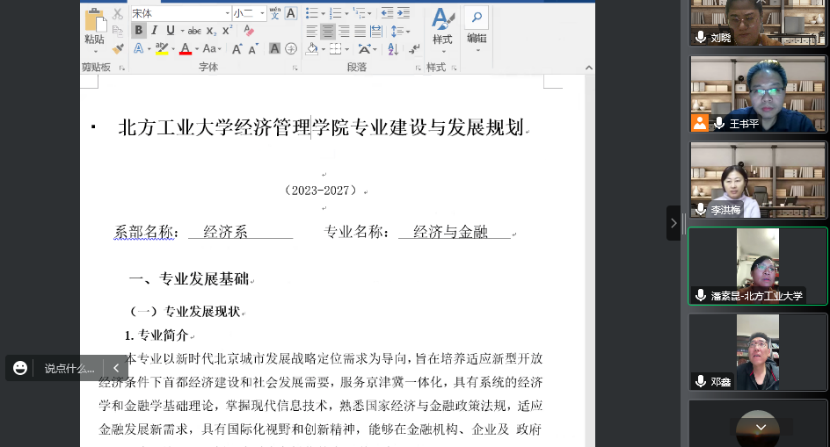 其次,王书平主任介绍了经济与金融专业的建设和发展规划,汇报了我校经济与金融学科近5年的专业发展现状和专业发展情况。通过结合新时代行业需求和我校的办学定位,在与国内外高校学科建设进行对标的基础上,对我校经济与金融专业建设规划提出了期望。