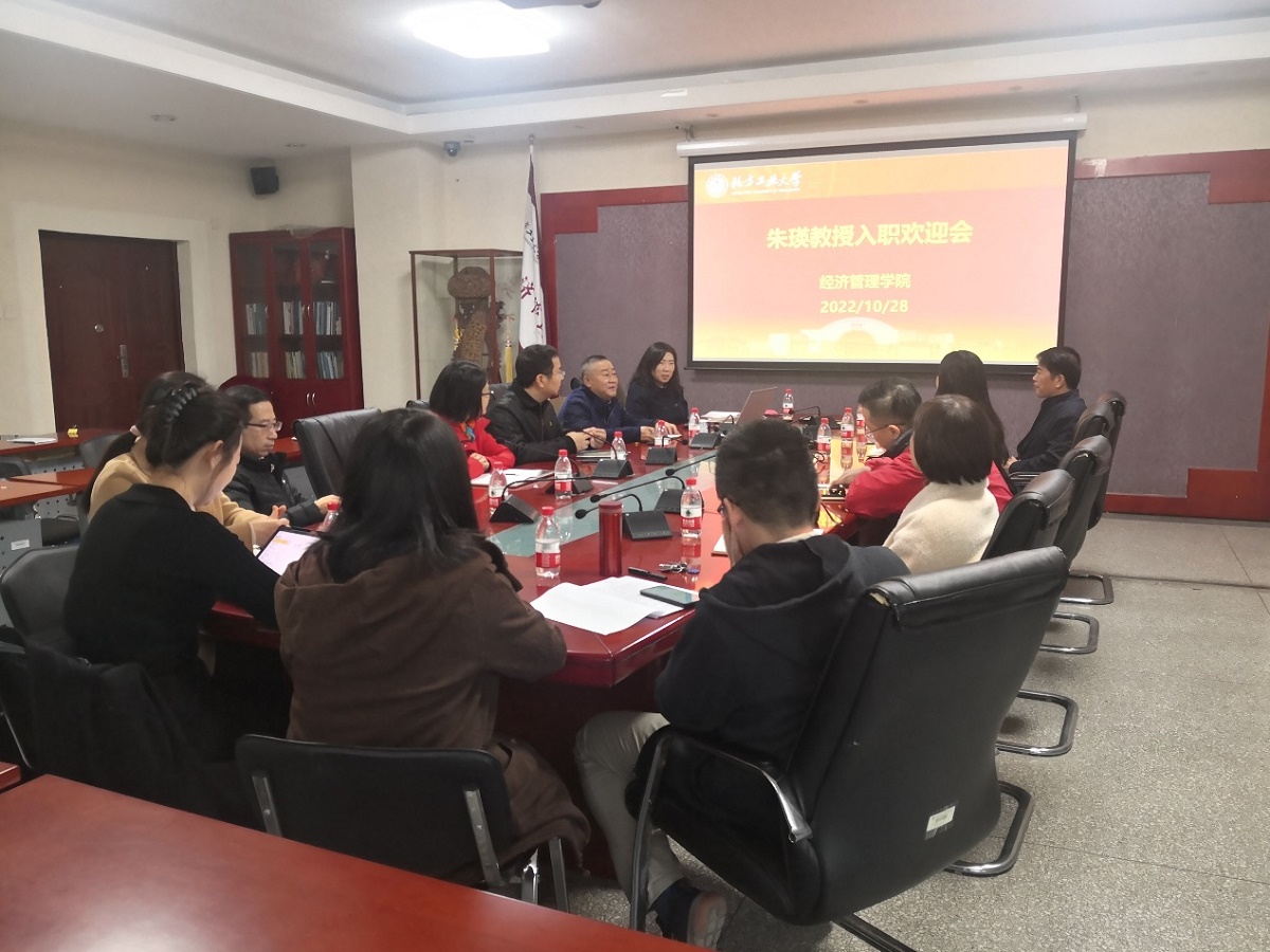 2022年10月28日上午,pp电子官方网站在励学楼201会议室举行高层次人才——朱瑛教授的入职欢迎会。学院院长赵继新,党委书记王伟宾,科研副院长蒋贵凰,各学科点责任教授,各系主任和学院相关教师代表参加了此次欢迎会。