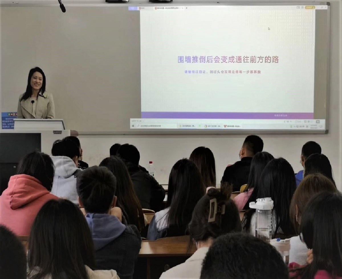 10月7日上午,pp电子官方网站会计系邀请贝瑞基因财务经理白露为会计学专业2022级专起本新生做了职业生涯规划专题讲座,讲座题为“围墙推倒后会变成通往前方的路”。