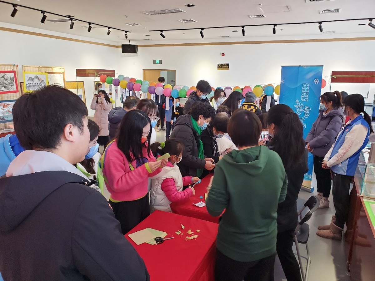 此次活动由非遗项目体验、创作非遗剪纸作品、猜灯谜等环节组成。非遗志愿讲解老师现场演示石景山区非遗项目——打花棍、抖空竹,与会人员依次体验,感受非遗中的乐趣。在非遗志愿讲解老师的带领下,大家分别创作了个人的剪纸作品——冬奥雪花,以此形式祝愿奥运健儿可以在赛场上取得优异成绩。活动现场,妙趣横生的灯谜吸引大家驻足观看,此次灯谜的内容,不仅包括了传统文化知识,更融入了冬奥和非遗的知识。