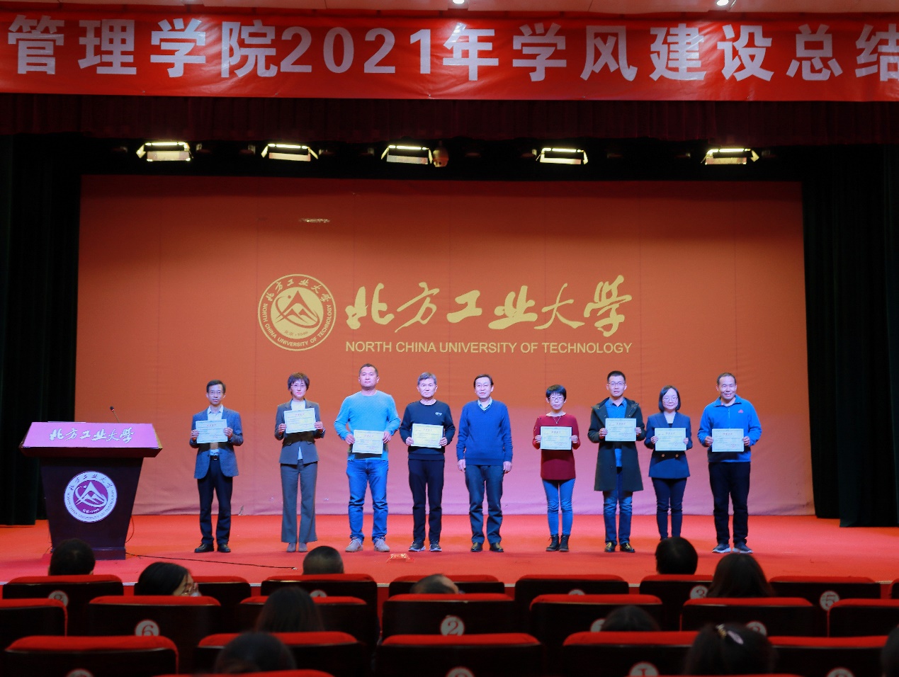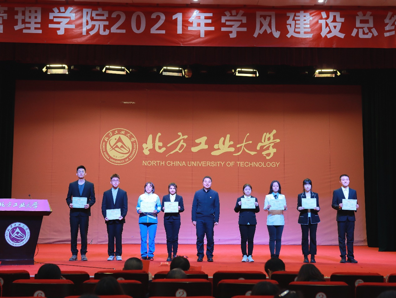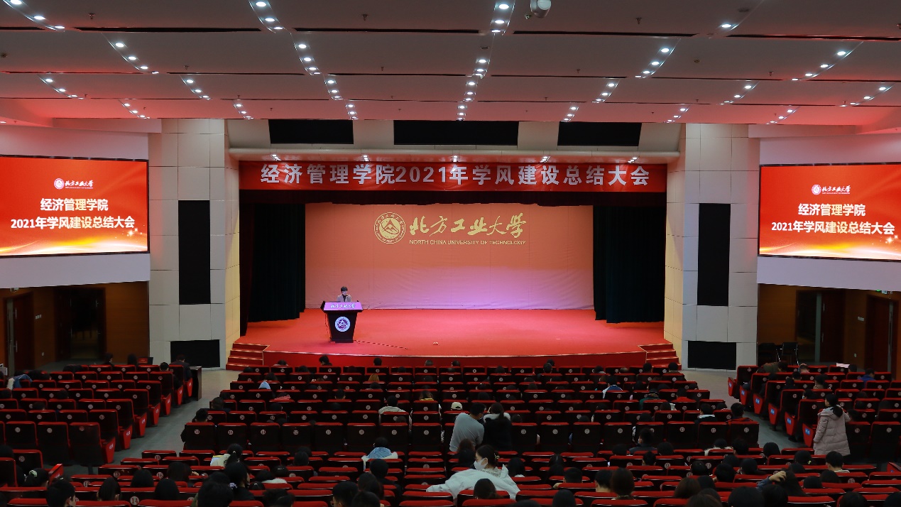 12月21日晚,pp电子官方网站在图书信息楼报告厅举行2021年学风建设总结大会。教务处处长刘文楷、学生工作部部长高国伟、学院全体领导班子成员、各系主任、班导师、学院辅导员和20级、21级全体学生参加了此次大会,会议由学院党委副书记赵洁主持。