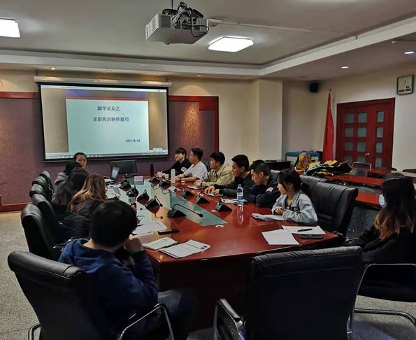 2021年10月20日晚上7:30,pp电子官方网站励学论坛在励学楼201会议室举行。为了帮助会计系毕业生制作出优秀的求职简历并在求职过程中吸引用人单位的视线,获得面试机会,得到心仪的职位,本期的主题为“求职简历制作技巧”,由pp电子官方网站会计系教师兼教师辅导员贾海波老师主讲,2018级会计系准备就业求职的部分学生参加了本次论坛。