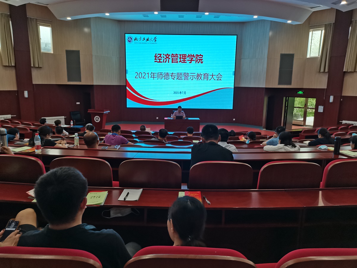 学院党委书记王伟宾以深入贯彻落实习近平总书记“七一”重要讲话精神和传达落实北京市教育系统“以案四说”警示教育大会精神为主线,认真反思检视问题的根源,做到明警示、知敬畏、守底线、严规矩、强制度、促发展,号召全院教师将思想和行动统一到学校党委的统一部署中来,坚决扛起从严治党主体责任。在师德专题警示教育会中,他带领大家分析了新时代师德建设的意义要求,认真梳理了教育部、北京市和学校的有关文件,并结合近几年学校师德失范的典型案例逐一剖析,引导广大教师争做“四有好老师”,当好“四个引路人”,坚守“四个相统一”,真正扛起新时代教育工作者的根本使命与责任担当。