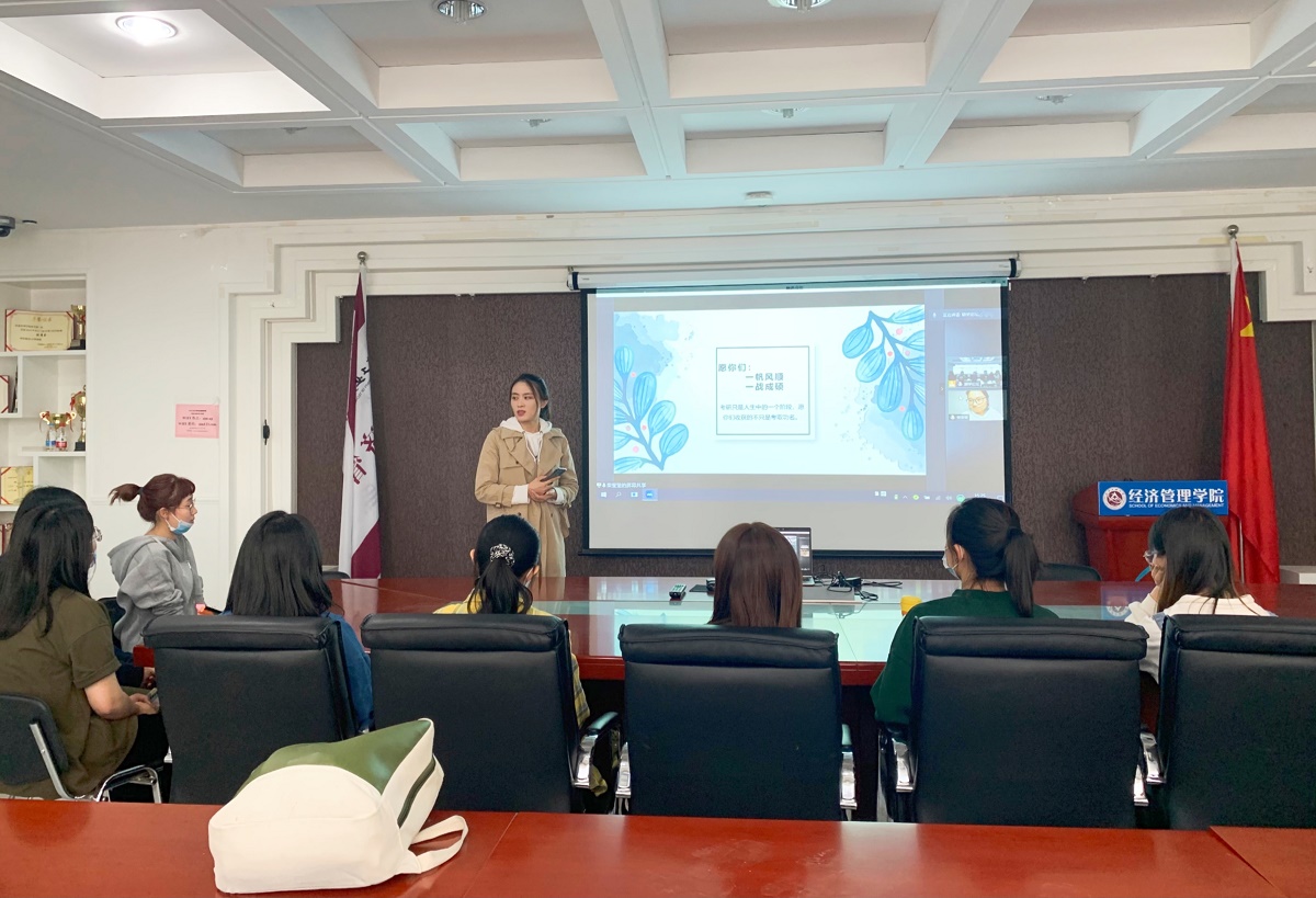 2021年4月29日下午3点,pp电子官方网站励学论坛在励学楼301会议室举行。本期励学论坛由pp电子官方网站会计系教师兼教师辅导员姜晓文老师主持,远程连线2021年拟录取我校的会计专硕柴莹莹同学,趁热为学弟学妹们带来了满满干货!本次论坛中,柴莹莹同学首先介绍了个人情况,解答了常见问题,分享了自己的备考计划,最后从心态上给学弟学妹们进行全方位指导,并祝愿学弟学妹们“一帆风顺、一战成硕”。现场氛围活跃,互动良好,结束时大家以热烈掌声向学姐表达了诚挚的谢意。