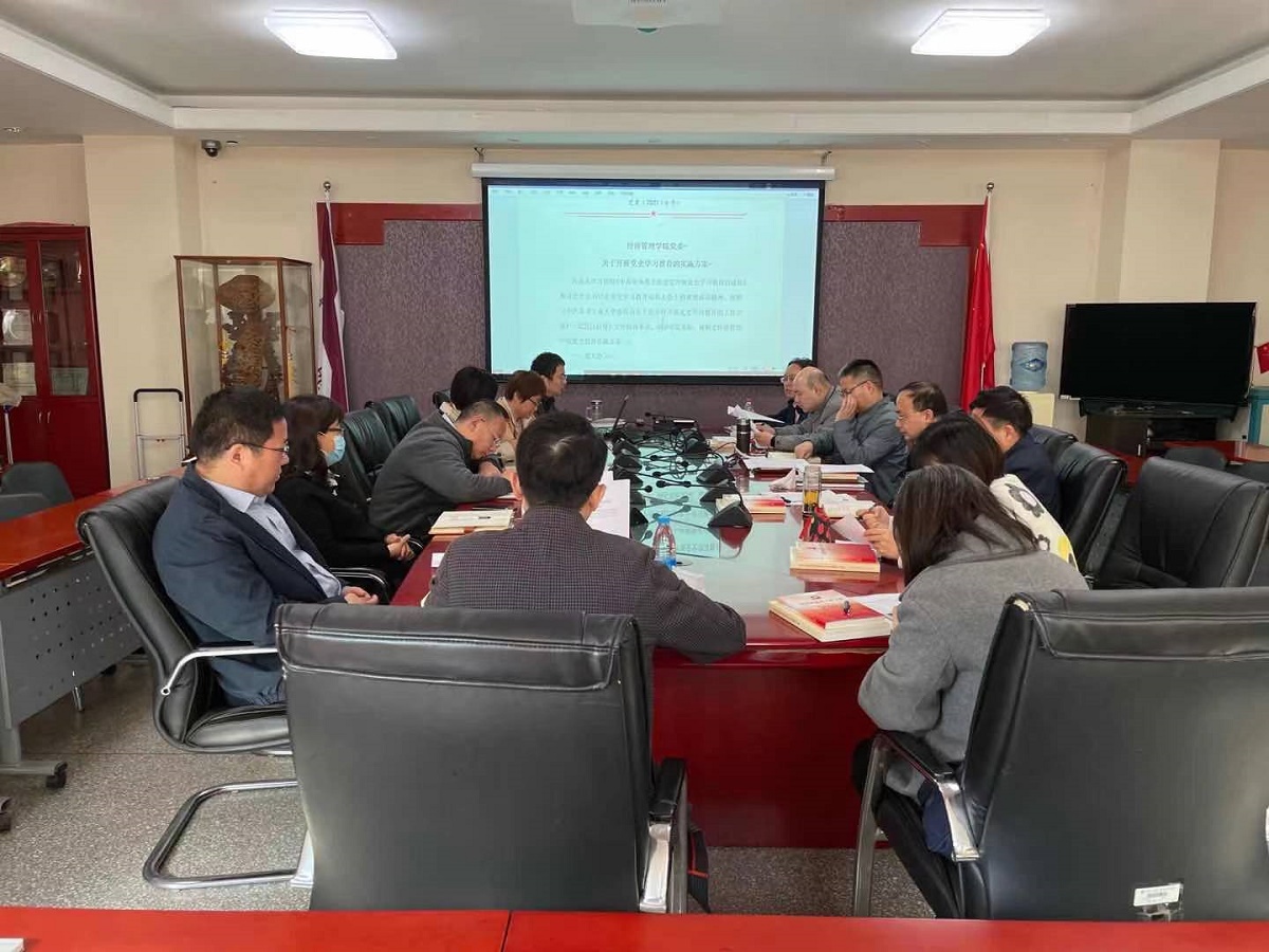 他指出,党史学习教育是一项政治任务,既是对过往的总结,又是站在两个一百年历史交汇处上的新起点,既是对理论的深入学习,又是对实践的不断总结。他强调,学院党委委员和各党支部书记作为学院和各支部的领头人,要牢牢把握此次党史学习教育的“学党史、悟思想、办实事、开新局”的总要求,以学党史、悟思想作为出发点,以办实事、开新局作为落脚点,工作中坚持“学史明理、学史增信、学史崇德、学史力行”,通过个人自学、交流研讨、集体学习、专题调研等方式提高学习质量和学习效果。他要求,各支部要根据学校党史学习教育的实施方案,细化学习计划,将各个环节的工作明确到点具体个人,夯实责任,要结合支部的日常工作有序推进各项工作,确保党史学习教育扎实有效开展。