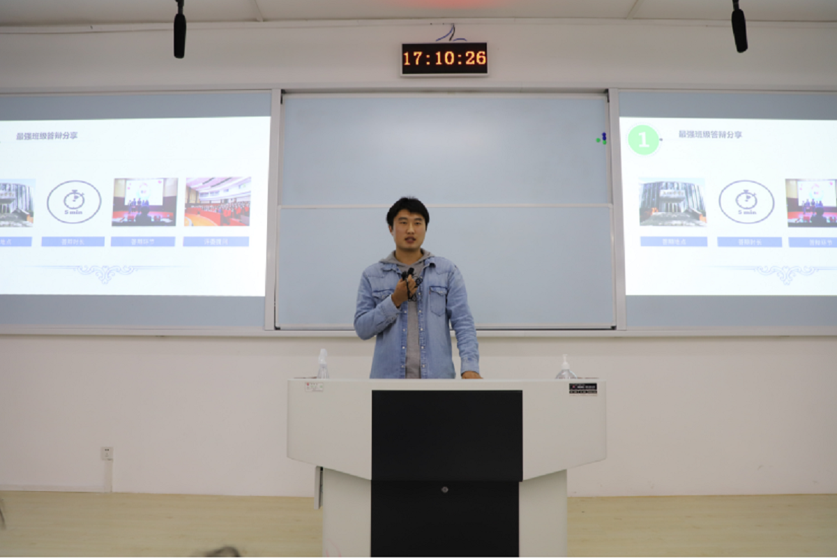 接着,杨渃彬学长主持开展了“最强班级”启动仪式,详细介绍了最强班级活动的评选时间,评选对象,评选流程以及答辩要求等内容。同时,展示了管18-1班和法16-1班两个获评优秀基层组织班级的获奖视频,为大家展示了优秀班级的建设成果。