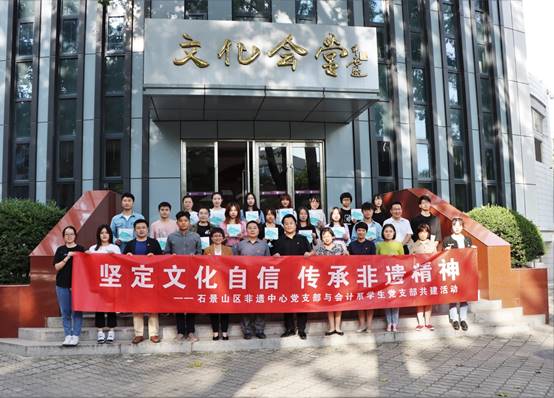 为了更好的保护和传承中国传统文化,在实践中坚定文化自信,经管学院会计系学生党支部与石景山区非物质文化遗产保护中心党支部于9月22日下午,在文化会堂举行双方支部共建仪式。现场,pp电子官方网站党委书记王伟宾,石景山区非物质文化遗产保护中心书记、主任何京江,中国社科院历史所研究员吴文涛,石景山区非物质文化遗产保护中心综合业务部负责人周继红,石景山区非物质文化遗产保护中心综合发展部负责人张士捷,石景山区非物质文化遗产保护中心办公室干事孔蓉,pp电子官方网站团委书记刘明阳,pp电子官方网站会计系第一学生党支部书记吴伟容,以及会计系第一、第二学生党支部党员、积极分子近200人参加了此次仪式,仪式由学院党委副书记赵洁主持。
