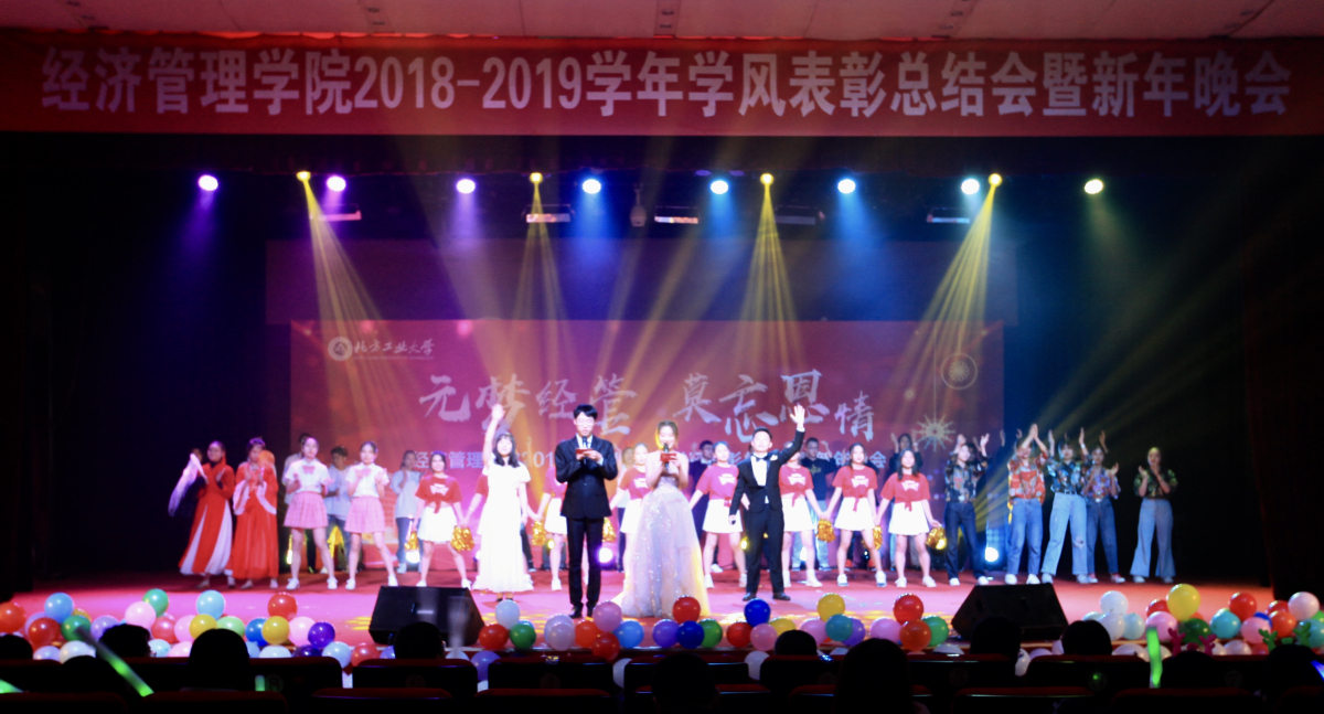 晚会现场,赵继新院长首先为同学们送上新年贺词,他肯定了学院全体师生在2019年中所取得的成绩,为大家积极参与国庆和冬奥相关活动所付出的努力表示感谢,为大家展现出的当代大学生奋发向上精神面貌点赞。在即将到来的2020年,赵院长希望同学们以“充实、奋斗、努力”作为关键词,以梦为马、砥砺前行、圆梦经管,努力成为各个领域中的最闪亮的星。
