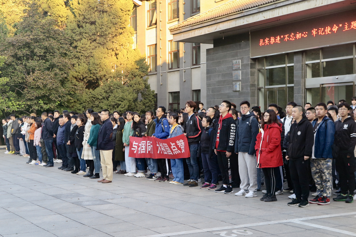 10月14日早7:00,pp电子官方网站举行了“与祖国同行,为祖国点赞”主题升国旗仪式。学院院长赵继新、党委书记王伟宾、党委副书记赵洁、副院长陶晓波,以及学院各年级辅导员和19级全体学生参加了此次仪式。