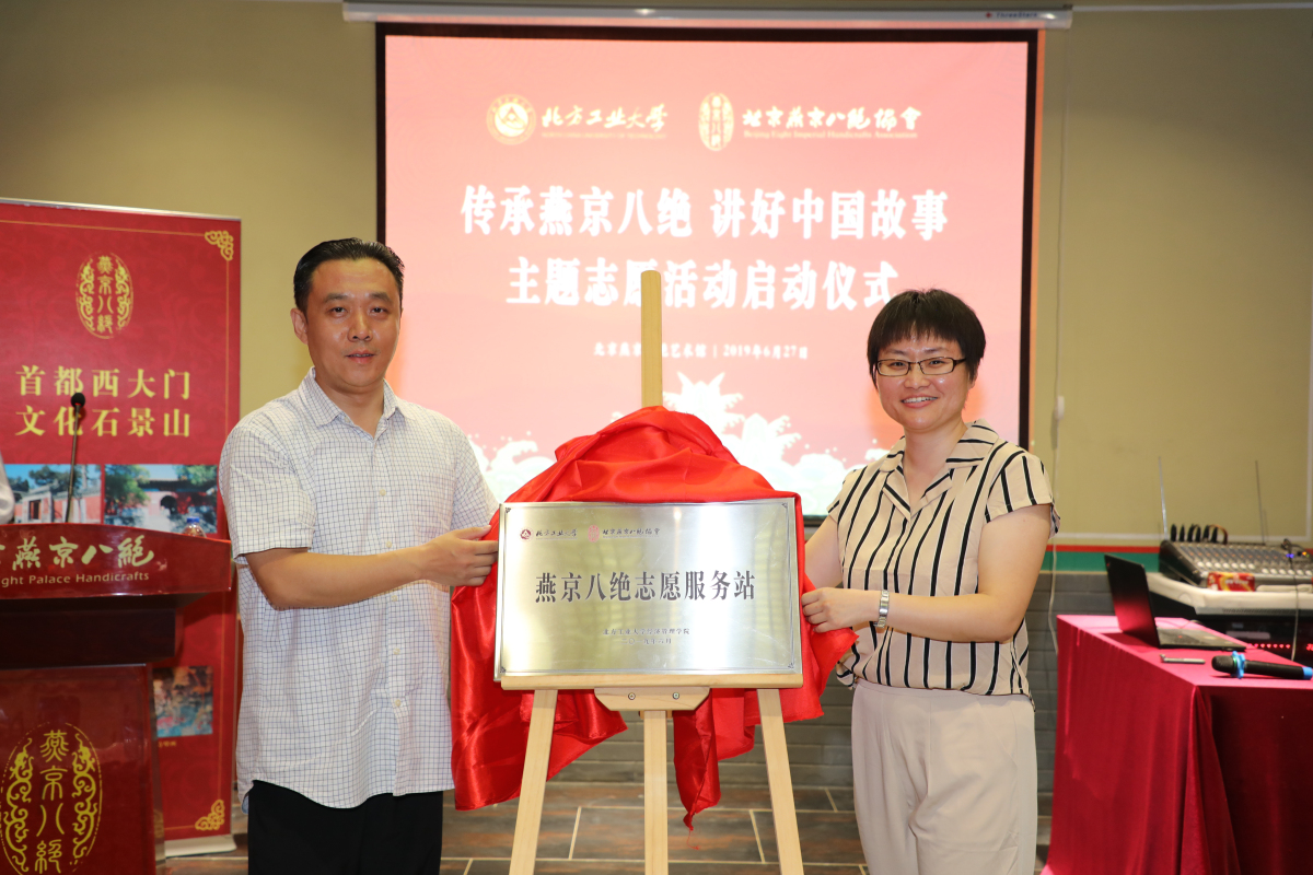 现场,赵洁书记和柏群馆长共同为“pp电子官方网站燕京八绝志愿服务站”揭牌,将启动仪式推向高潮,标志着经管学院燕京八绝系列文化志愿活动正式拉开帷幕。随后,与会领导和嘉宾为第一批讲解志愿者佩戴工作证。