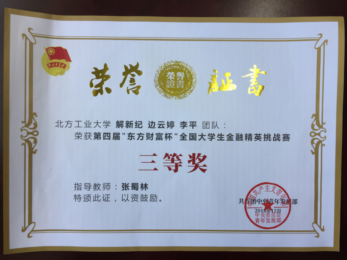 我校经管学院经济系张蜀林老师、李洪梅老师作为指导教师,组织2016级经济与金融专业学生全员参加了本届大赛,最终有5支团队、共15名学生,分别获取本届大赛的“团体三等奖“。通过本次大赛,大大提高了本专业学生的金融投资能力。