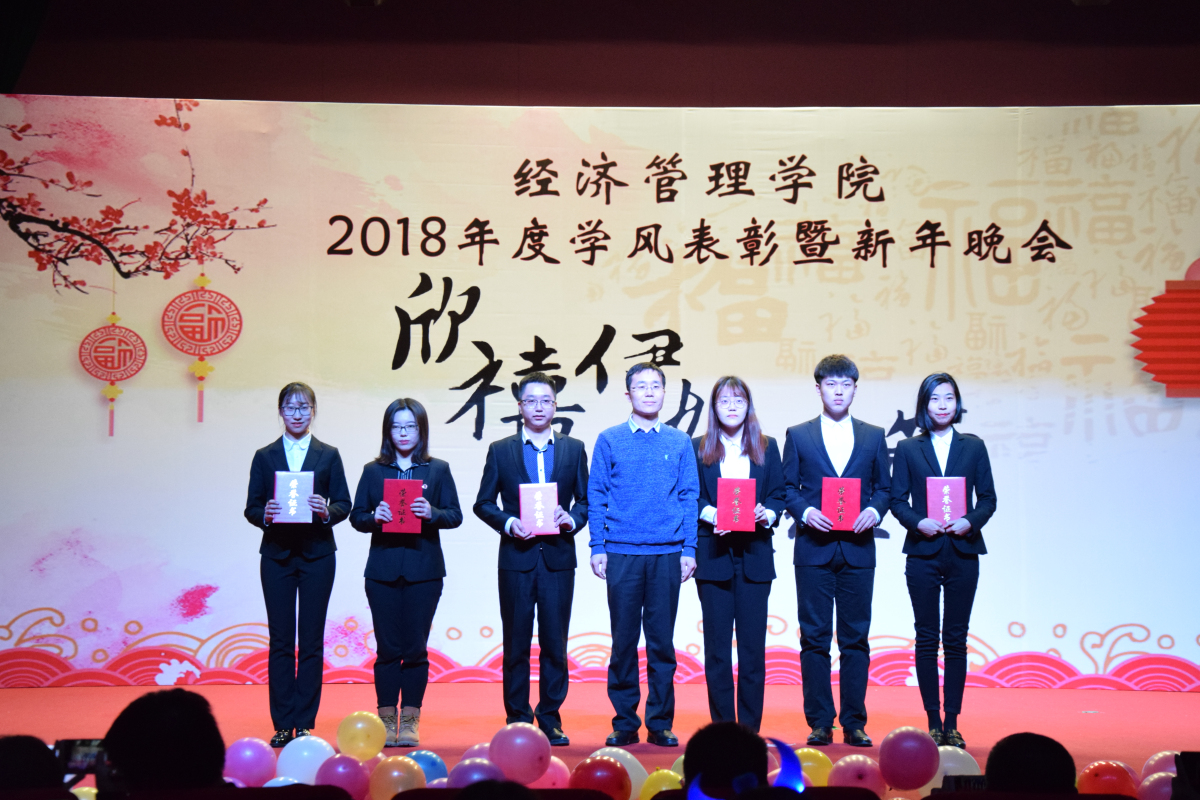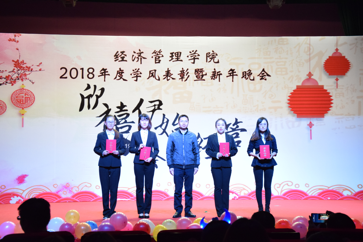 2018年12月18日晚,pp电子官方网站在图书馆报告厅举办“欣禧伊始 荟萃经管”2018年度学风表彰暨新年晚会。学生工作部部长高国伟、校团委书记何有华、学生工作部副部长赵帅、pp电子官方网站全体领导班子成员、各系主任、班导师、辅导员及600余名同学共同参加了本次晚会。