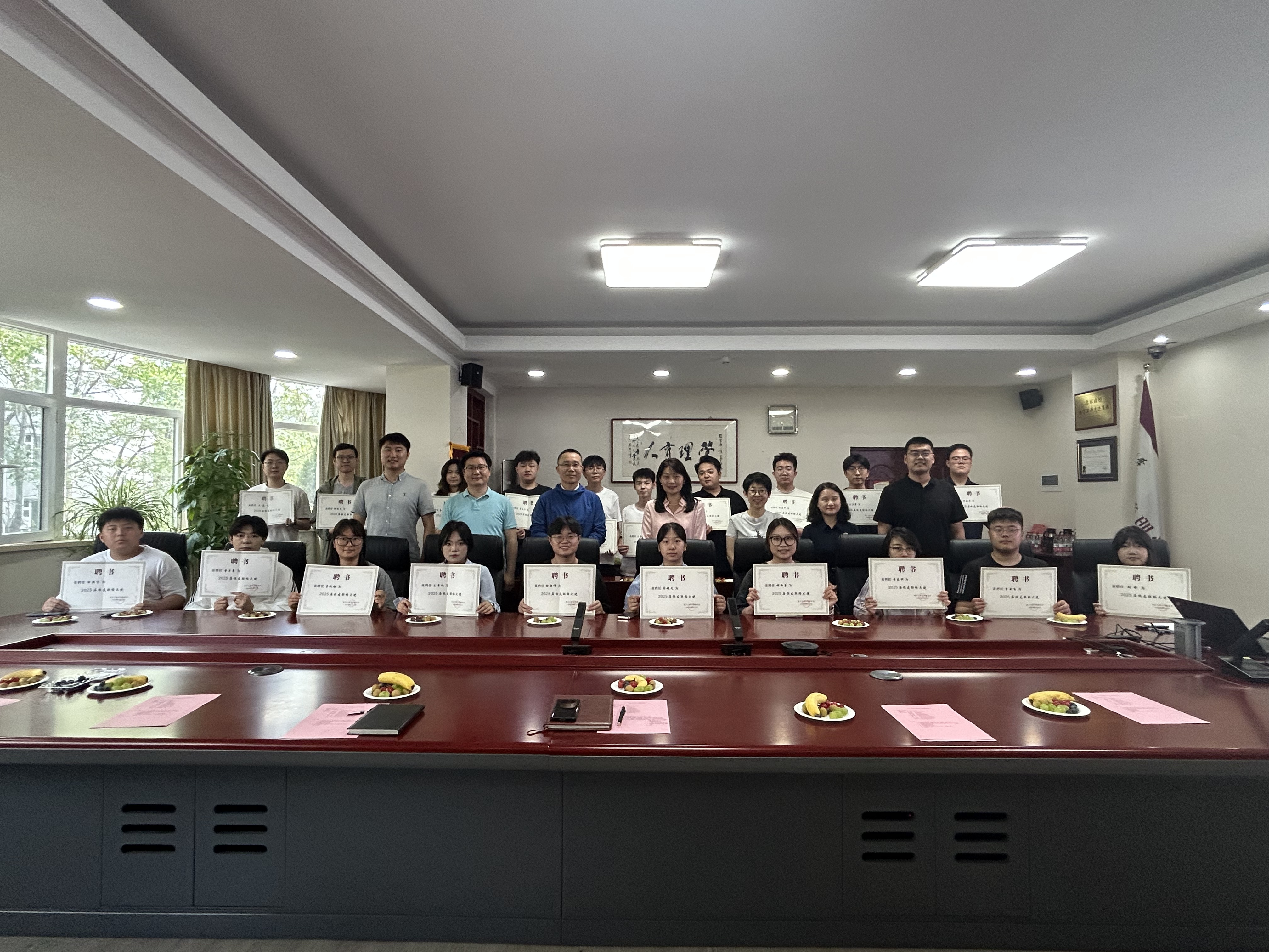 最后,谢朝阳、吴丹共同为学院2025届校园联络大使颁发聘书,并合影留念。
