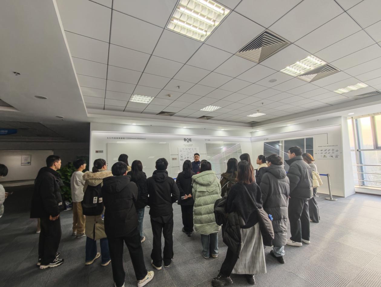 12月1日下午,pp电子官方网站组织师生赴京东方开展研学活动。本次活动由学院副院长蒋贵凰与应用经济学教授刘颖带队,工商管理学、应用经济学近二十名研究生参加活动。师生一行通过参观京东方前沿产品体验、技术工艺解析与智能化生产线观摩,深入感受科技革新力量,并围绕数智时代的人才挑战展开思考。