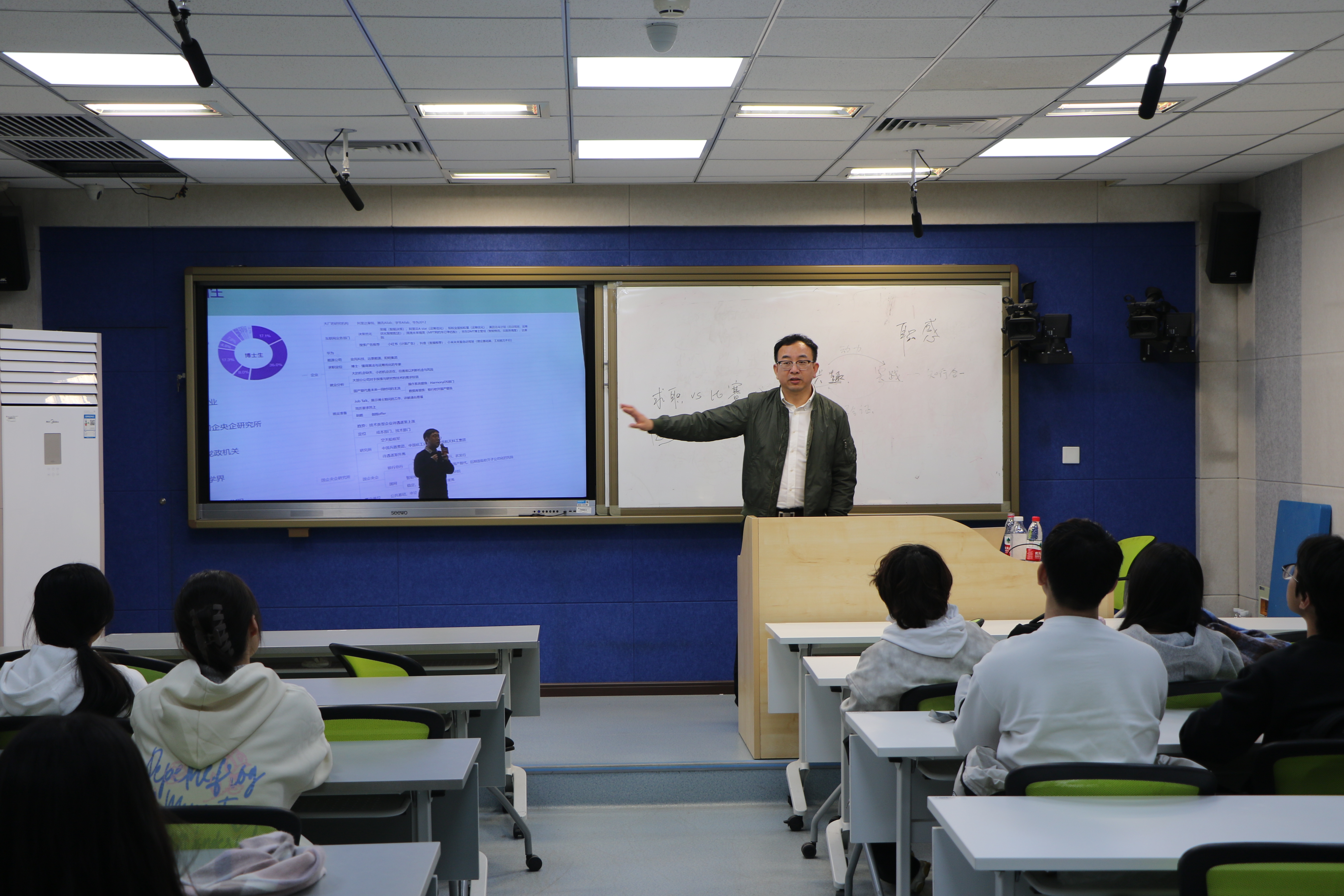 11月14日,pp电子官方网站在励学楼135教室举办了“创新创业导航”系列讲座第十二讲,邀请教育部万名创新创业导师库首批入库导师、首届全国大学生职业规划大赛北京市赛评委及决赛选手辅导专家白云老师做了题为“职业规划大赛备赛案例分析”的报告。pp电子官方网站实验中心主任牛天勇主持讲座,全校参赛的四十余名同学和部分指导教师参加了交流。