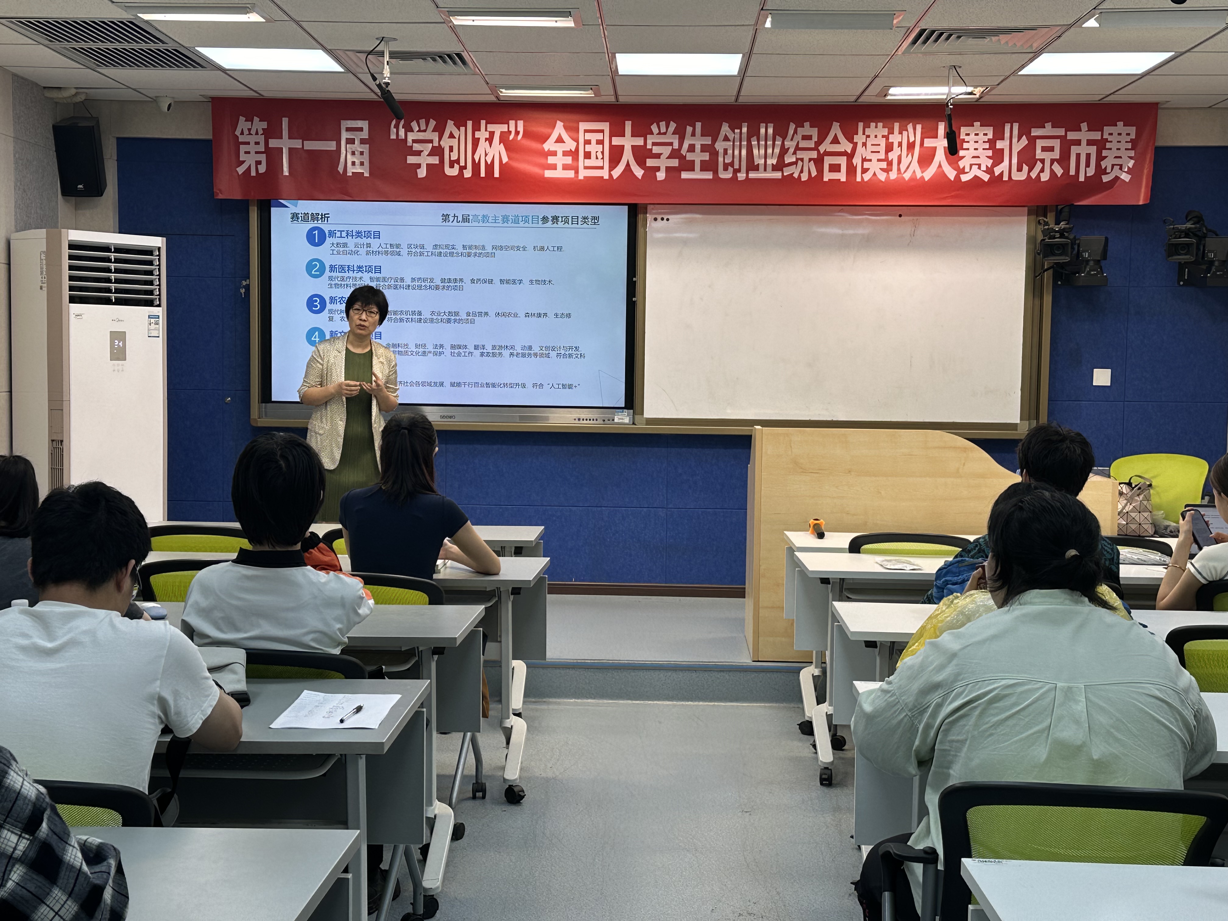 讲座过程中,刘丹教授结合自己丰富的竞赛指导经验,重点围绕赛事规则解析、赛道选择、参赛选题、备赛筹划等方面进行详细讲解。刘教授结合往届获奖作品实例,分析了赛道选择的方法和技巧;结合评分标准,强调了各参赛团队需重点遵循的大赛规则和注意事项,以及如何结合评分标准准备策划书和PPT。讲座后,多个团队留下向刘教授就具体项目进行请教,咨询修改意见。通过本次讲座,同学们对竞赛规则理解更加透彻,也解决了备赛困惑。