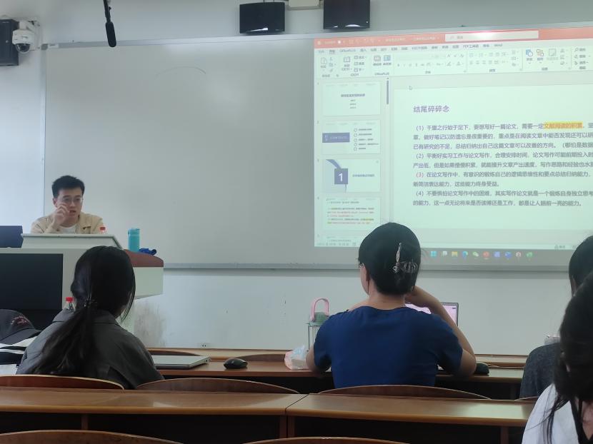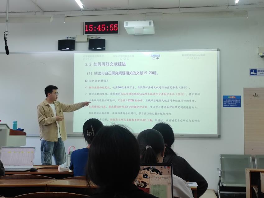 5月8日下午,pp电子官方网站励学论坛第七期在励学楼310教室举行,pp电子官方网站经济研22级在读优秀研究生赖凯丰进行了主题为“研究生论文写作分享”的讲座。