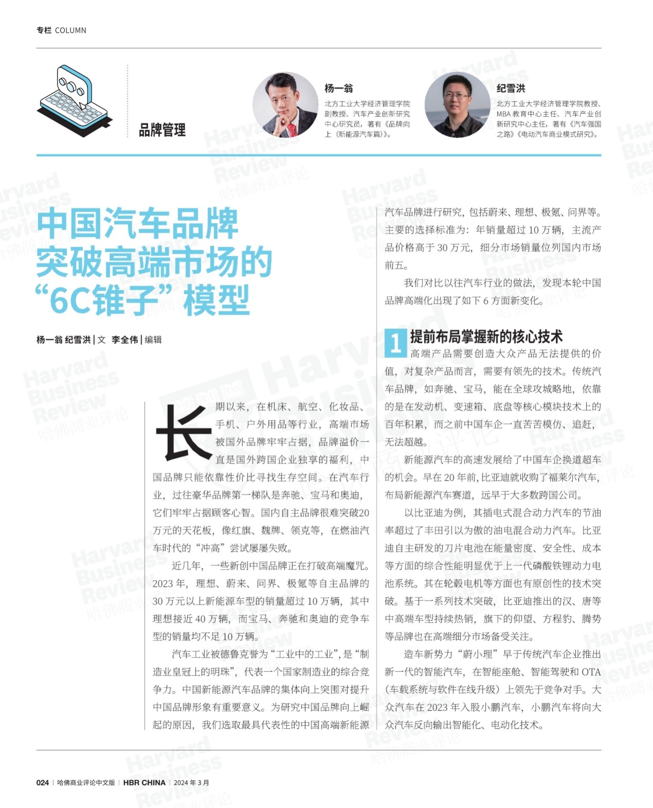 近日,pp电子官方网站杨一翁副教授与纪雪洪教授合作撰写的文章——“中国汽车品牌突破高端市场的‘6C锥子︐模型”发表在被誉为“管理圣经”的《哈佛商业评论》(中文版)杂志上。