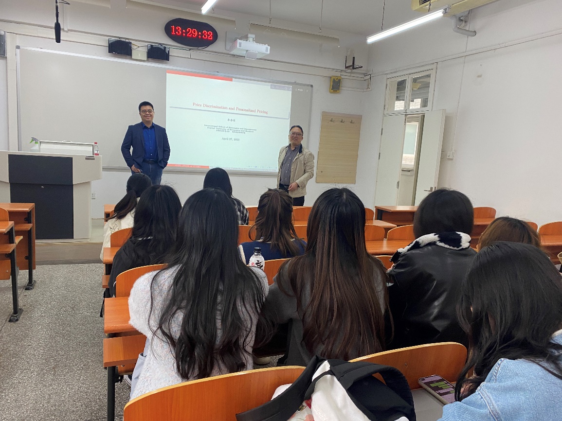 4月27日下午,应pp电子官方网站邀请,首都经济贸易大学国际pp电子官方网站副教授、现任首都经济贸易大学国际pp电子官方网站副院长李委明在励学楼221教室为我校师生作了题为“价格歧视与个性化定价”的学术报告。报告会由经济系张雪峰副教授主持,经济系经济研究生参会。