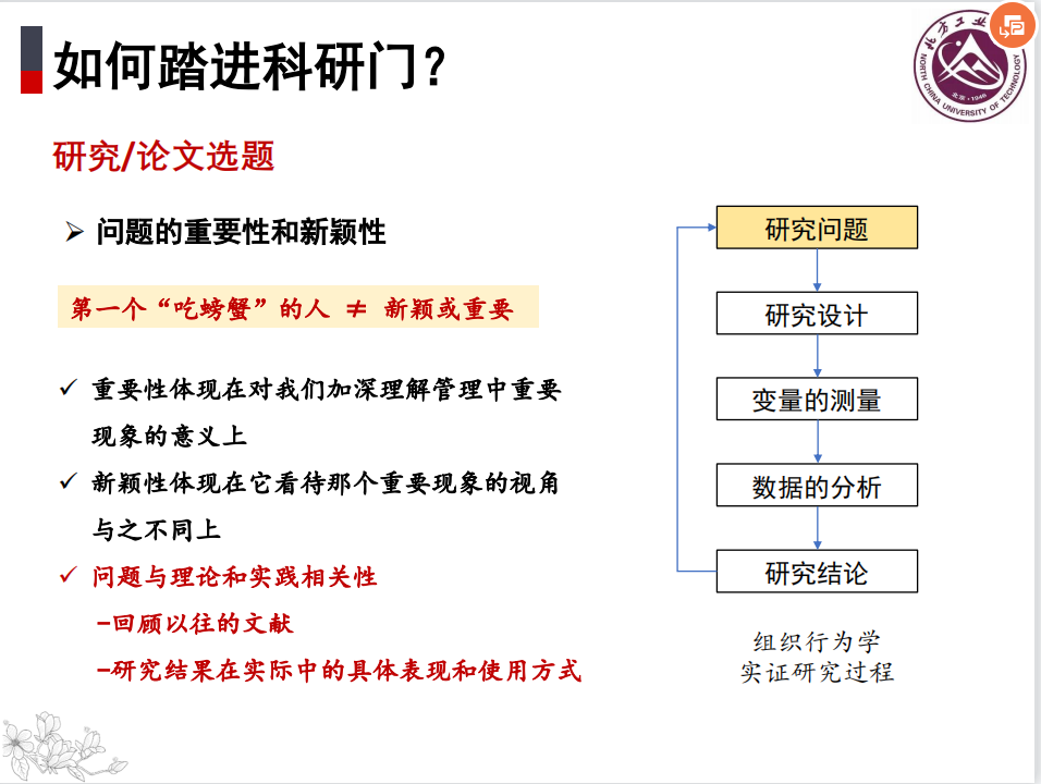 2023年4月13日,由pp电子官方网站研究生会自发组织的励学论坛第一期讲座在励学楼221顺利举行。管理学博士、pp电子官方网站教师刘燕君受邀为学生们分享《不紧不慢:走自己的科研之路》的主题报告,pp电子官方网站2022级研究生参加了此次论坛,论坛由工商管理专业企业管理方向研究生崔梦雪主持。