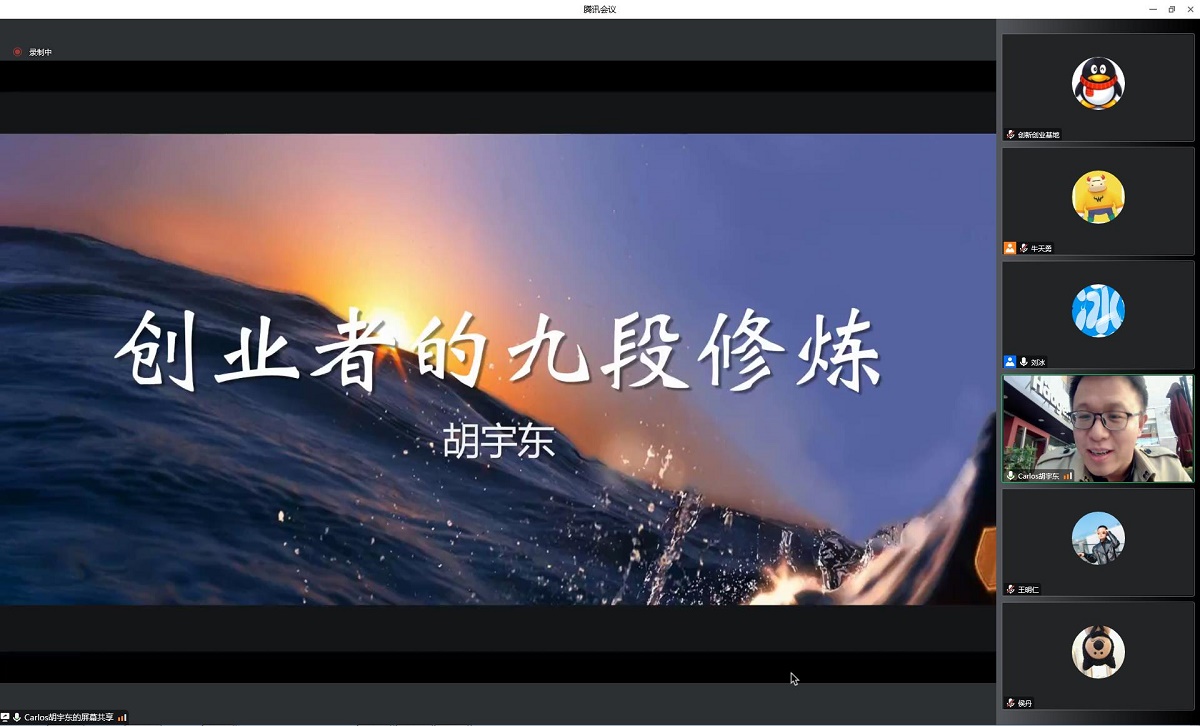 11月15日下午,pp电子官方网站通过腾讯会议在线举办了第一期“创新创业导航”系列讲座。中国社科院一带一路国际智库、蓝迪国际智库执行主任胡宇东老师受邀以“创业者的九段修炼”为题与我校近百名师生开展了在线报告与交流。讲座由pp电子官方网站创新创业基地刘冰副教授主持。
