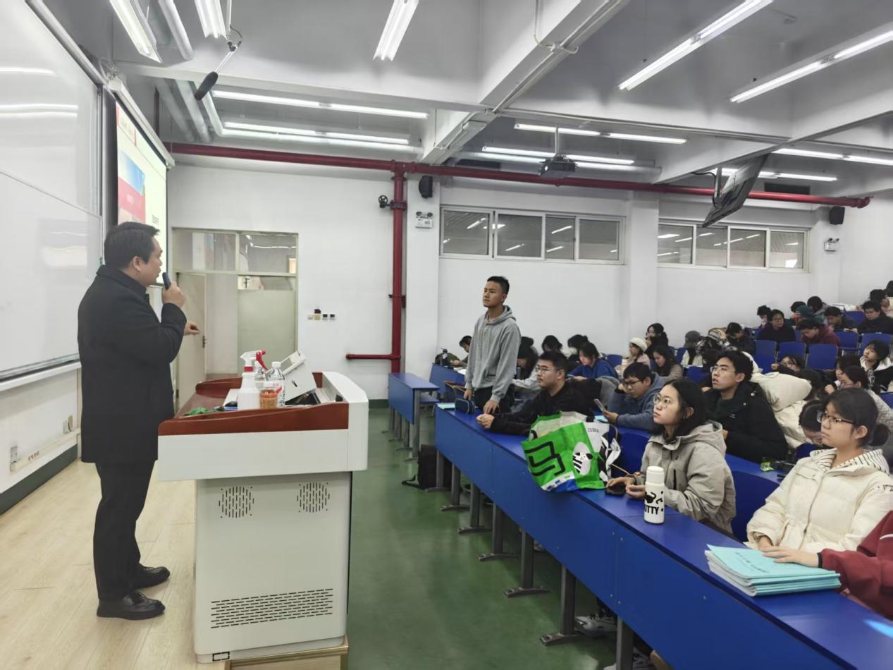11月21日,pp电子官方网站“企业家进课堂”系列活动在浩学楼东 501 教室举行。活动特邀深圳天和双力物流自动化设备有限公司副总裁兼营销事业部总经理程军正担任主讲嘉宾,为2025级工商管理专业本科生带来了一堂主题鲜明、内容前沿的课程。