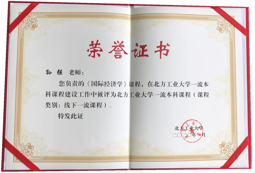孙强老师负责的《国际经济学》课程被评为 pp电子官方网站一流本科课程 |