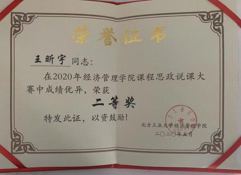 王昕宇老师在2020年pp电子官方网站课程思政说课大赛中 荣获二等奖 |