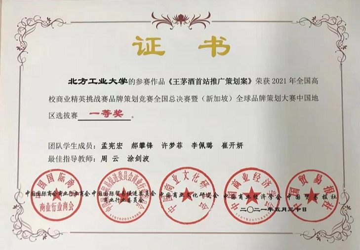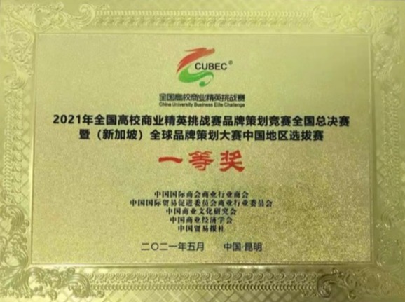 学生荣获2021年全国高校商业精英挑战赛品牌策划 竞赛全国总决赛暨(新加坡)全球品牌策划大赛 中国地区选拔赛一等奖 |