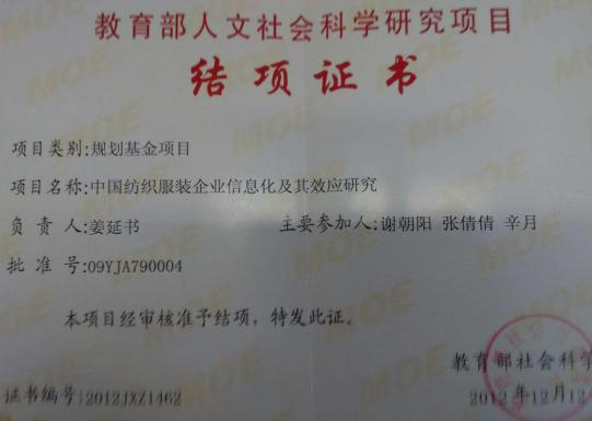 姜延书老师荣获教育部人文社会科学研究项目结项证书 |