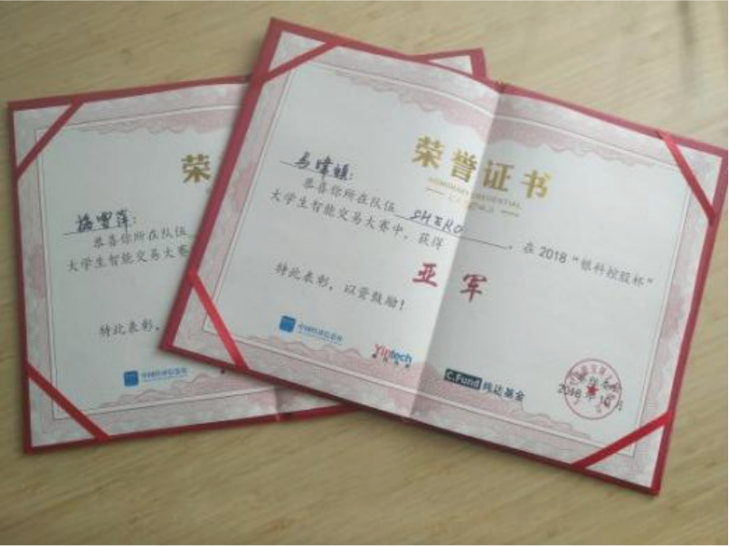 “银科控股杯”智能交易大赛亚军(2018) |