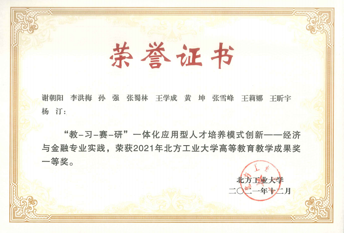 本专业以培养新商科人才为导向,坚持“以习固学、以赛促学、以赛带教、教研合一”的总路线,探索形成了多层次“教-习-赛-研”一体化应用型人才培养模式,即:“教”-借助“互联网+”和“智能+”多课堂协同推进混合式教学;“习”-强化内外协同共建,强化实践训练,实现“以习固学”;“赛”-发动经济与金融专业学生全员参赛提高应用能力,实现“以赛促学”;“研”-运用“OBE”理念开展教学研究,实现“教研合一”。