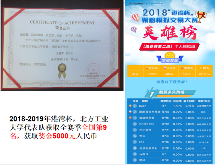 “银科控股杯”智能交易大赛全国亚军、奖金5万元(2018) |