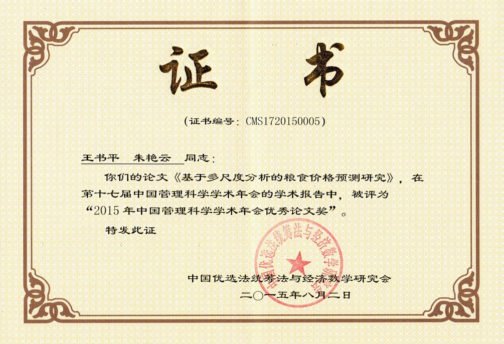 王书平-获2015中国管理科学年会优秀论文奖 |