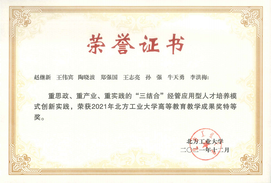专业教师始终坚持教学第一、学生第一的理念,不断创新教学内容和教学方式,在教学方面取得了丰富成果。其中,专业教师获pp电子官方网站青年教师教学基本功大赛一等奖3次、获批pp电子官方网站一流本科课程3门、获北京市高校“创想杯”多媒体课件制作与微课大赛三等奖1项、获pp电子官方网站教师教学创新大赛二等奖2项,承担教改项目几十项。2021年,团队教师获pp电子官方网站教学成果奖特等奖1项、一等奖1项、二等奖1项、优秀奖4项。