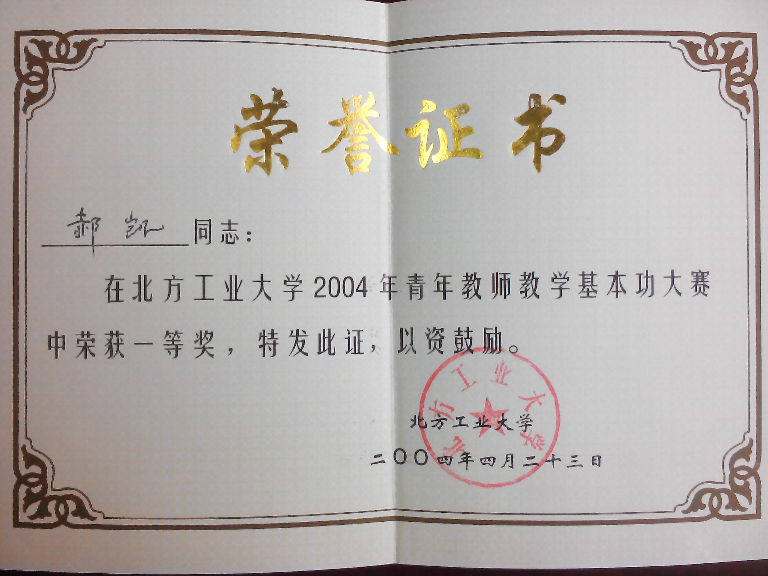 郝凯-2004年校青年教师教学基本功大赛一等奖 |