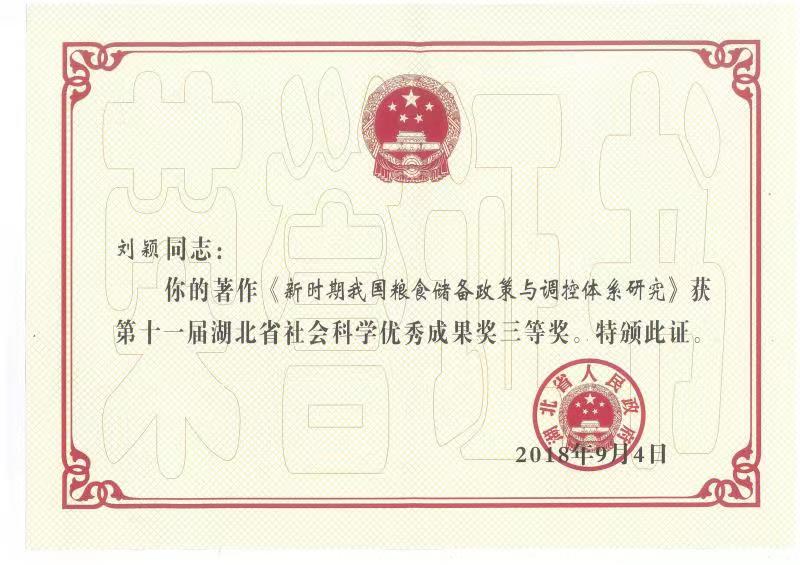 刘颖-湖北省社会科学优秀成果三等奖 |